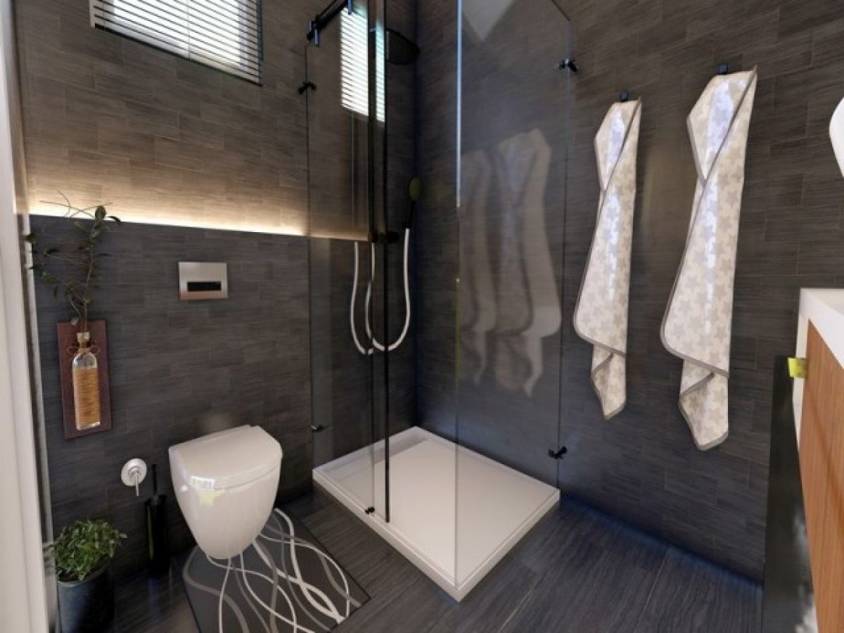 - Toplam alanı 52,5 m2 olan 8 daire-şehir evi 1 + 1. Ayrı bir girişi ve geniş bir çatı terası olan tek katlı daire.