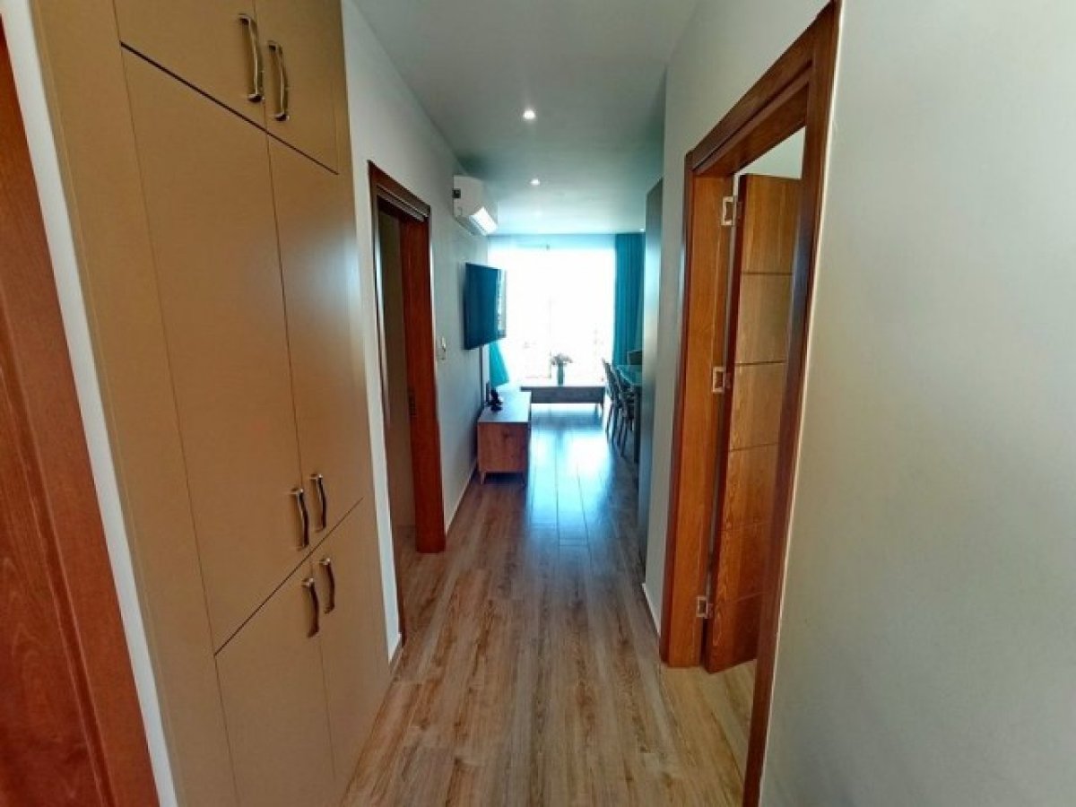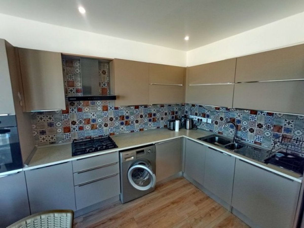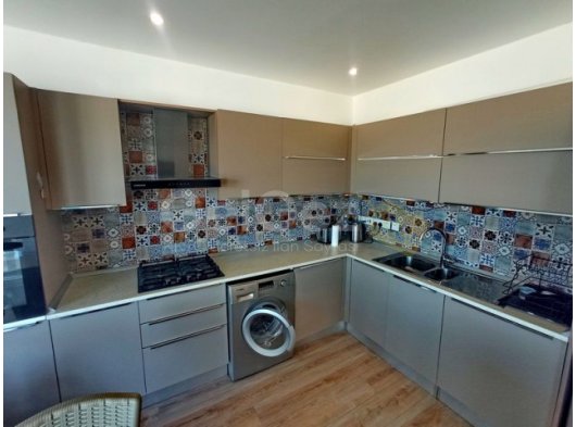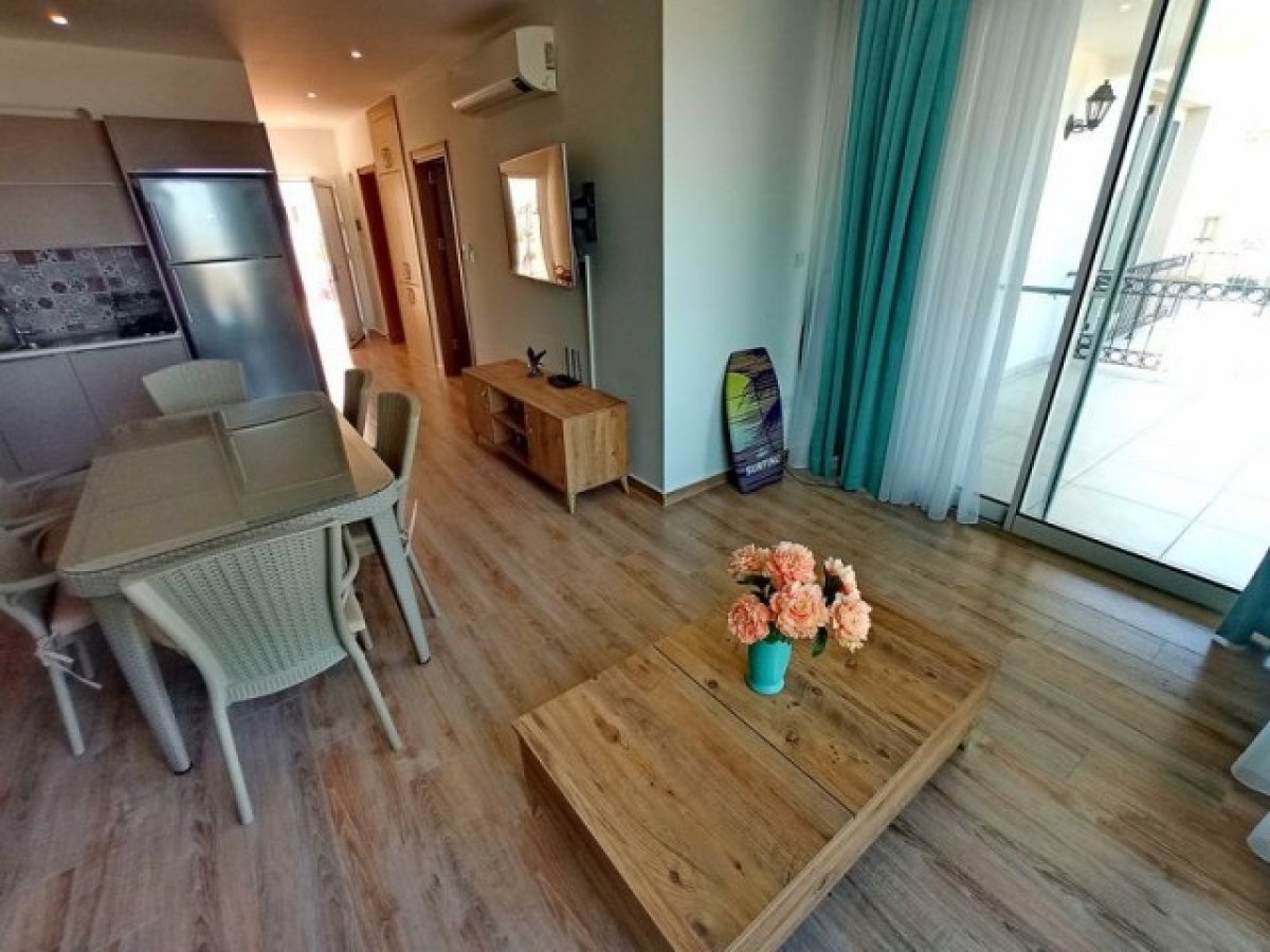 Açık mutfaklı geniş bir salona sahip 2 yatak odalı zemin kat daireleri bulunmaktadır. Mutfakta tüm mutfak üniteleri kaliteli beyaz eşyalara sahiptir. Büyük veranda kapıları, oturup deniz manzarasının keyfini çıkarabileceğiniz açık bir terasa açılmaktadır.