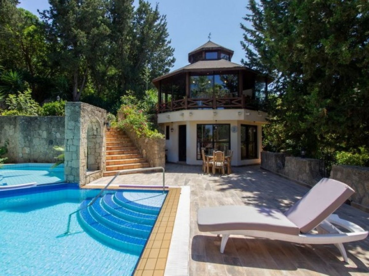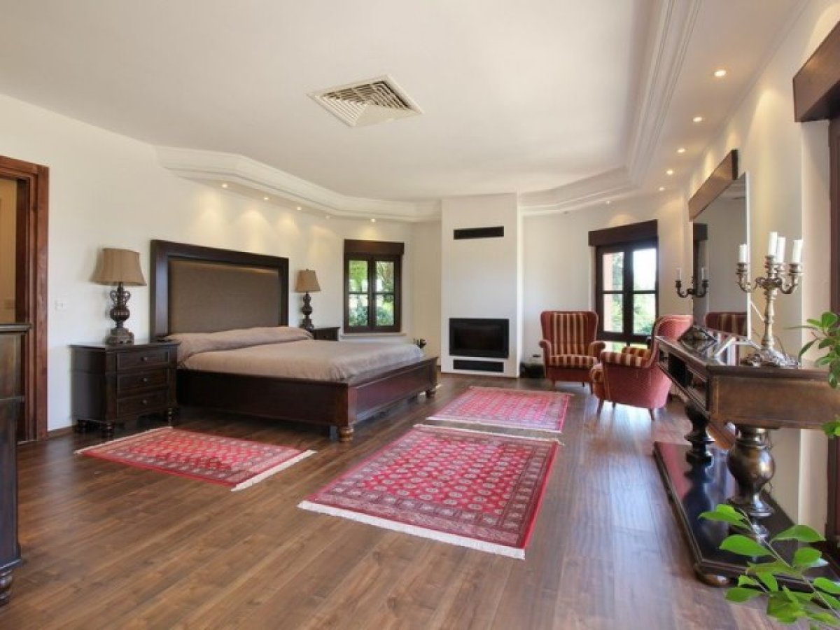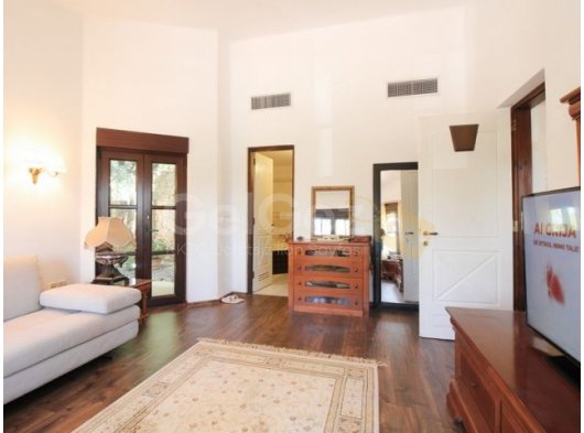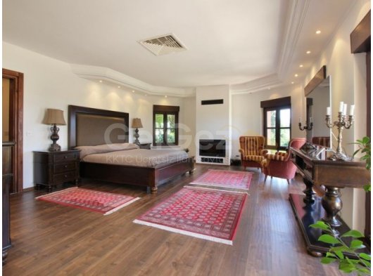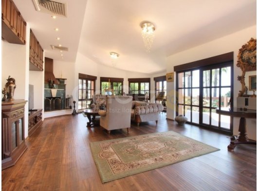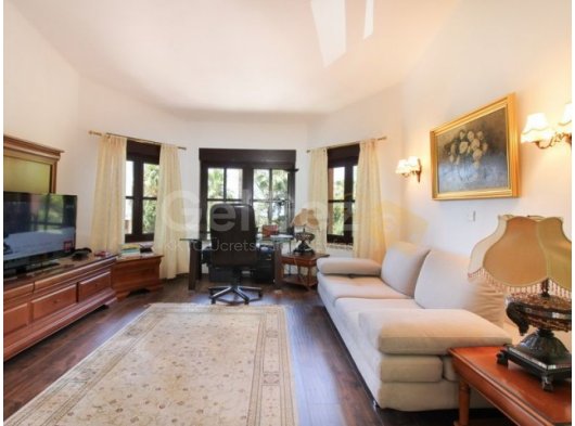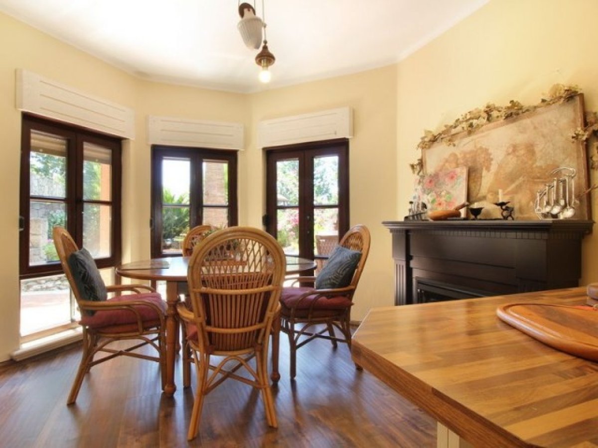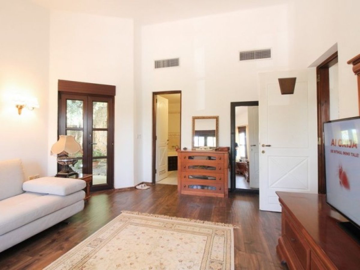 Özel bir yol, güzel araba yoluna ve Akdeniz ile antik estetiği birleştiren villaya çıkar. Giriş, lüks iç mekanın tonunu belirleyen mermer zeminli geniş bir fuayeyi gözler önüne seriyor. Fuaye, açık şömine ve laminant ahşap görünümlü zeminler içeren aydınlık bir oturma odasına açılmaktadır. Mutfak tam donanımlıdır ve ayrıca ebeveyn banyolu bir yatak odası da vardır.