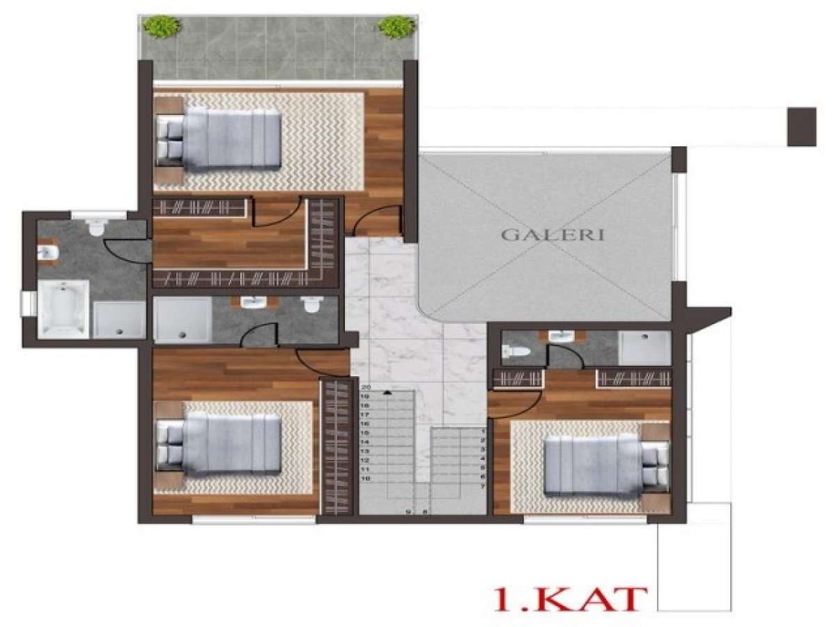· Yatak odalarında laminat parke veya isteğe bağlı seramik karolar seçeneği