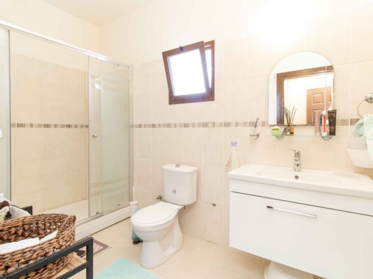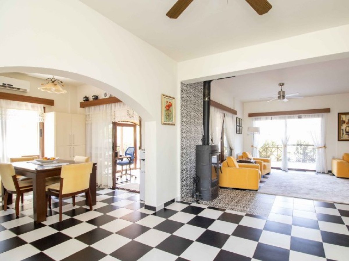 İç mekânda, şömineli geniş bir oturma odası, ankastre beyaz eşyalarla donatılmış açık plan mutfak ve aydınlık bir yemek alanı bulunur. Kısa bir merdivenle zemin kattaki yatak odası ve banyoya, devamında ise üst katta üç yatak odası ve aile banyosuna ulaşılır. Ebeveyn yatak odası özel banyoya, gömme dolaplara ve üst kattaki terasa doğrudan çıkışa sahiptir.