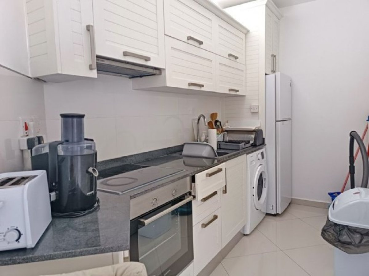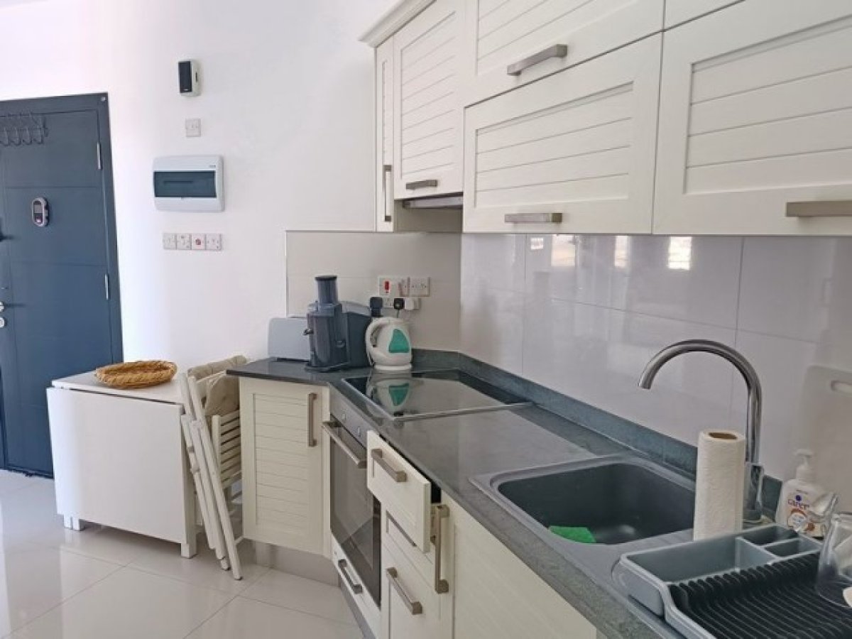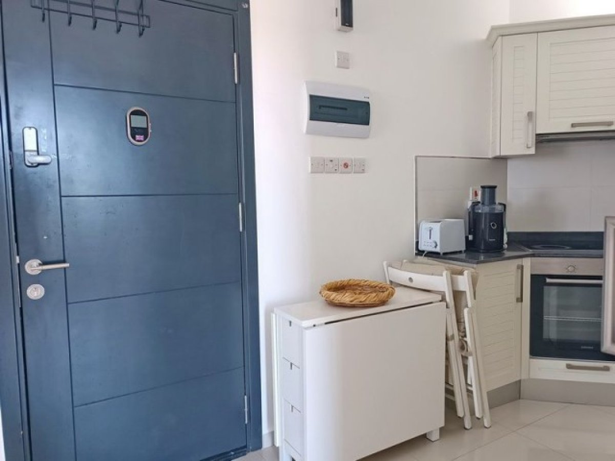 Daire, mermer tezgahlar, lüks armatürler ve seramik zeminler ile alanı etkili bir şekilde kullanmaktadır. Bir oda, ayrı bir yatak odası ve salon alanı oluşturmak için bölgelere ayrılmıştır.