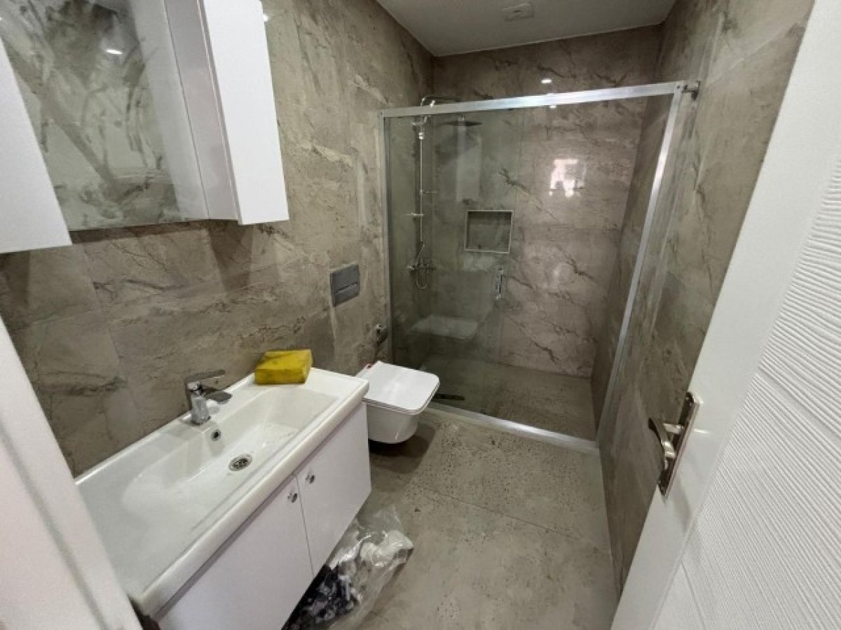 Ankastre mutfak, seramik zemin, gömme dolap ve ebeveyn WC gibi detaylar daireyi daha fonksiyonel hale getiriyor.