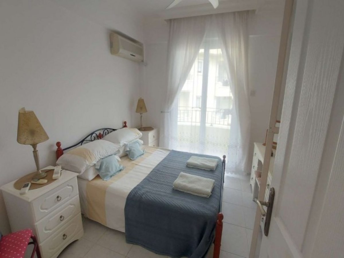 2. Yatak Odası - 3,80 m x 3 metre - Çift cepheli, arka tarafta Fransız tarzı balkona açılan çift camlı veranda kapıları, yan tarafta pencere, duvara monte klima ünitesi, tavan vantilatörü, gömme dolap, fayans zemin.