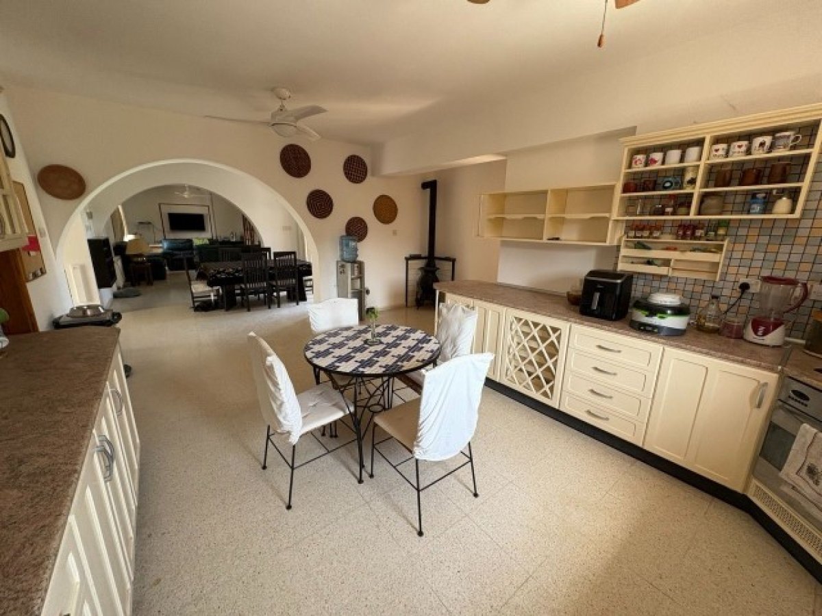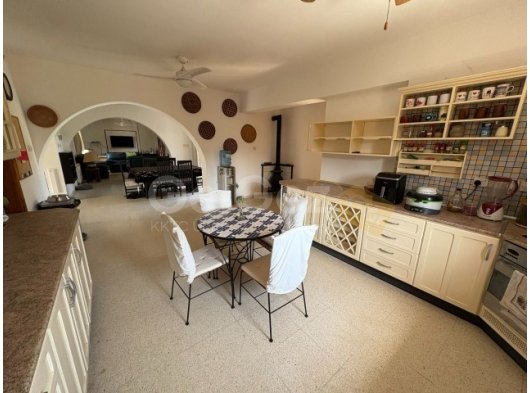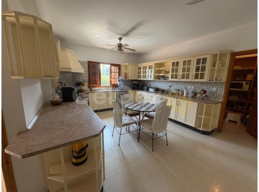 - Mutfakta yan tarafa bakan bir pencere, elektrikli ocak, ankastre fırın, ankastre bulaşık makinesi ve gizli aspiratör bulunmaktadır. Açık bej-sarı renk düzeninde tasarlanmış olup, şık mermer tezgahlarla temiz ve zarif bir görünüm elde edilmiştir. Daha fazla konfor için iki tavan vantilatörü ve merkezi bir odun sobası ile donatılmıştır.