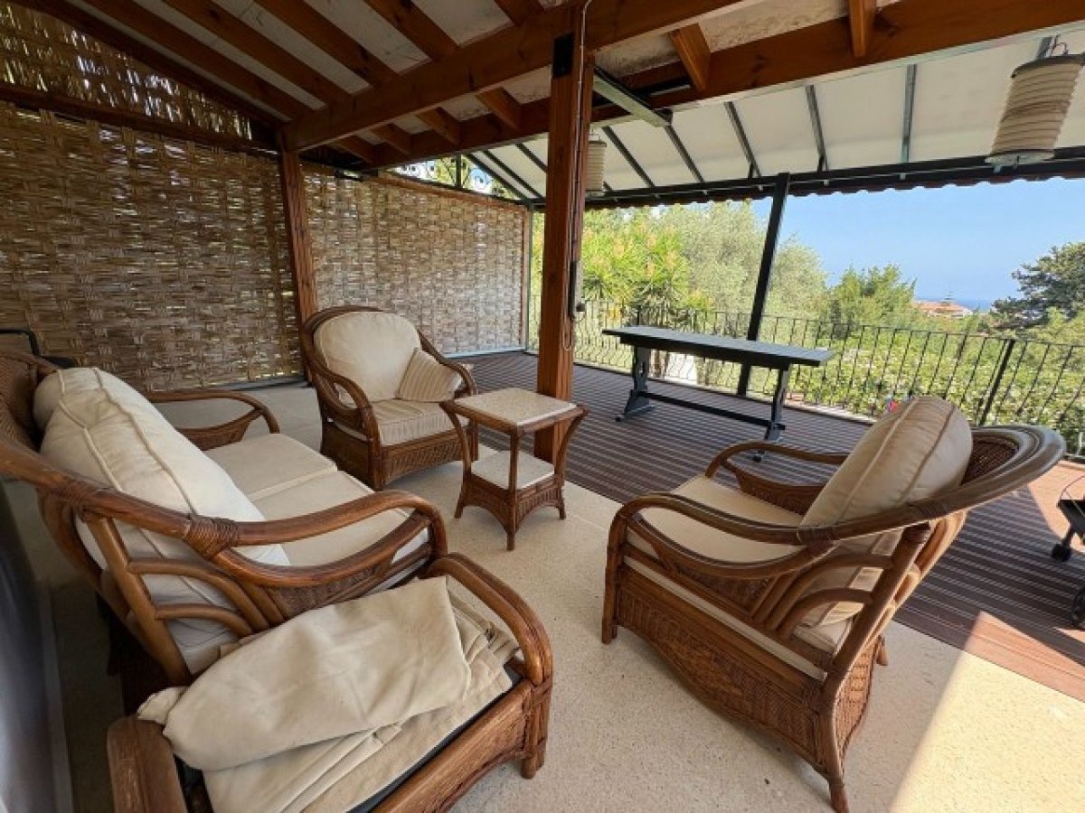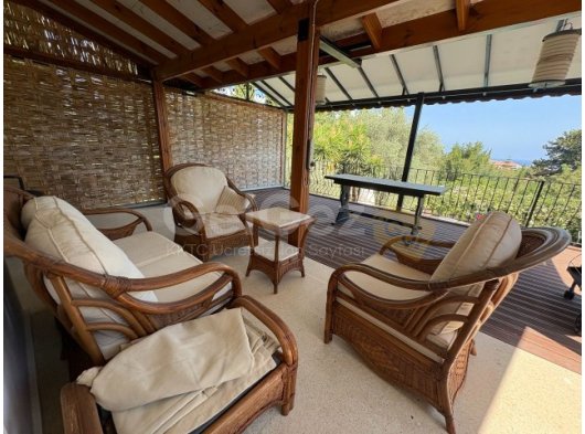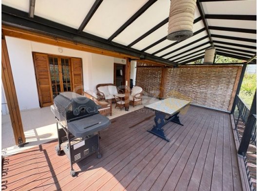 - Dinlenme odasında geniş bir ön pencere, iki tavan vantilatörü, duvara monte klima ünitesi, TV altyapısı, ikinci bir odun sobası, duvara monte iki radyatör ve özel bir çalışma alanı bulunmaktadır. Arkaya bakan iki kapı, nefes kesen manzaralara ve karo zeminli bir barbekü alanına sahip geniş bir terasa doğrudan açılır.