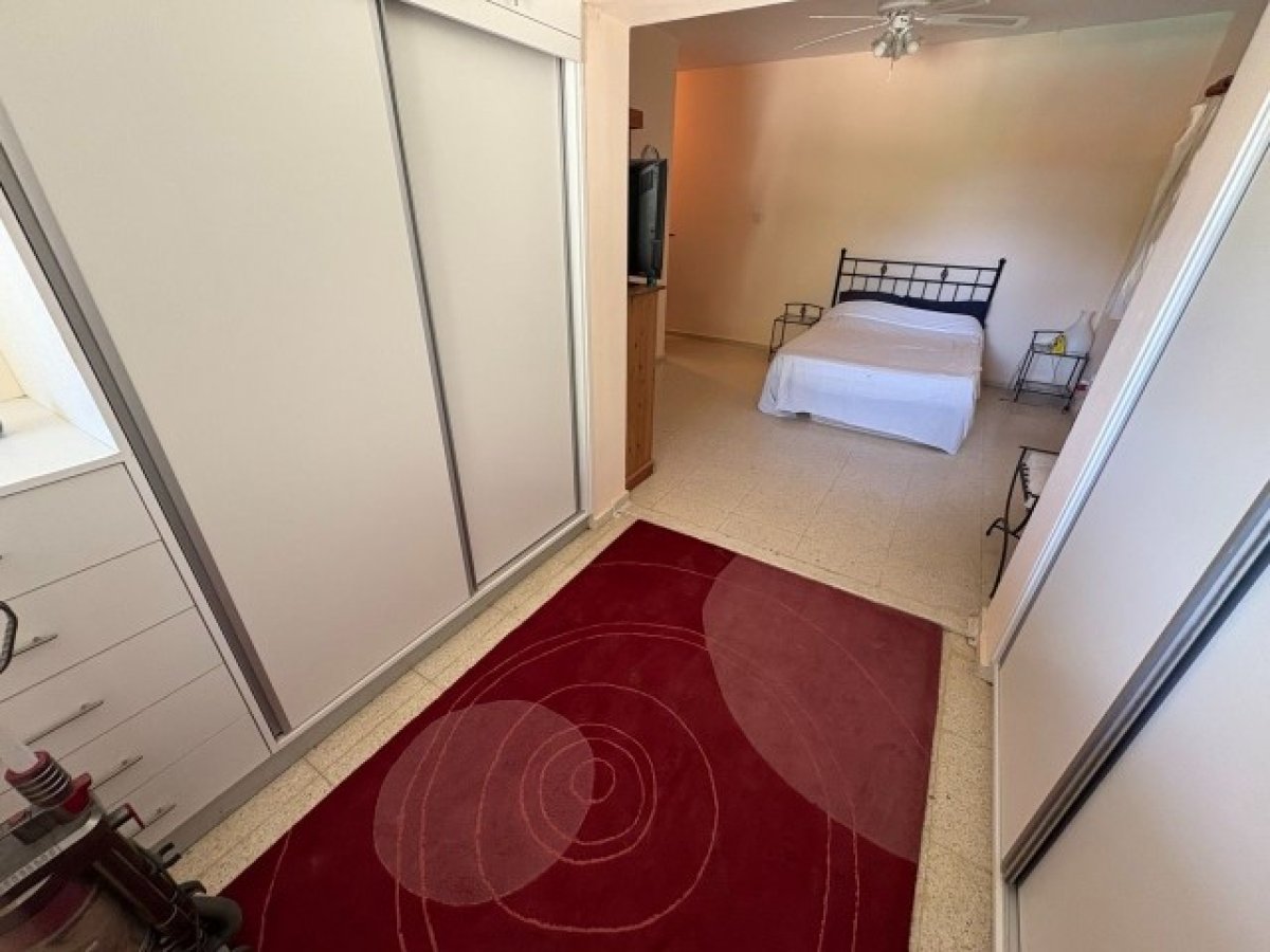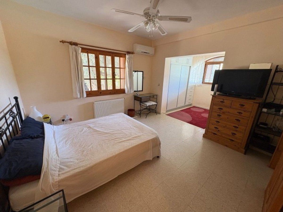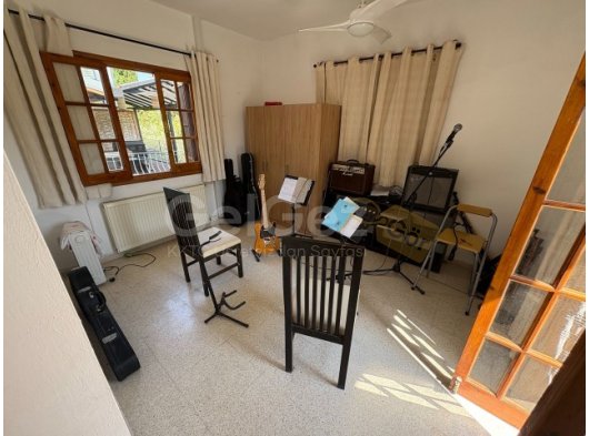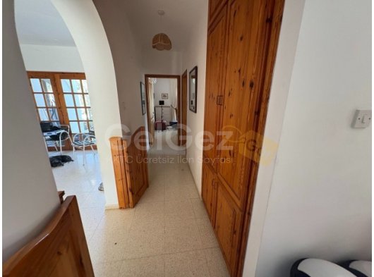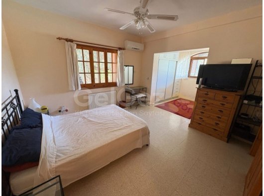 Ebeveyn Yatak Odası - 6,8 m x 3,6 m - Yan ve arka tarafta bol miktarda doğal ışık sağlayan çift yönlü pencerelere sahip aydınlık ve ferah çift kişilik yatak odası. Klima, tavan vantilatörü ve yıl boyunca konfor için duvara monte radyatör ile donatılmıştır. Geniş gardırop alanı ve depolama alanı sunan, karo zeminli özel bir giyinme odası içerir.