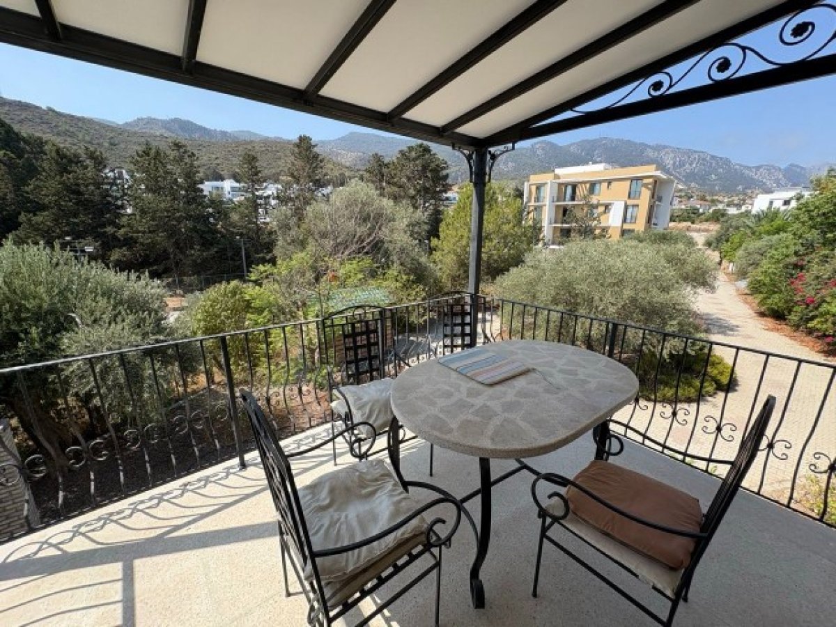 Merdivenler - Doğal ışığı içeri alırken tam mahremiyet sağlayan, yerden tavana kadar buzlu cam pencereye sahip çarpıcı merdiven. Şık siyah paslanmaz çelik korkulukla tasarlanmıştır. Fayans zemin kaplamalıdır. Üst kata ulaştığınızda, dağların net bir şekilde görülebildiği ön tarafa bakan bir balkona açılan bir kapı vardır.