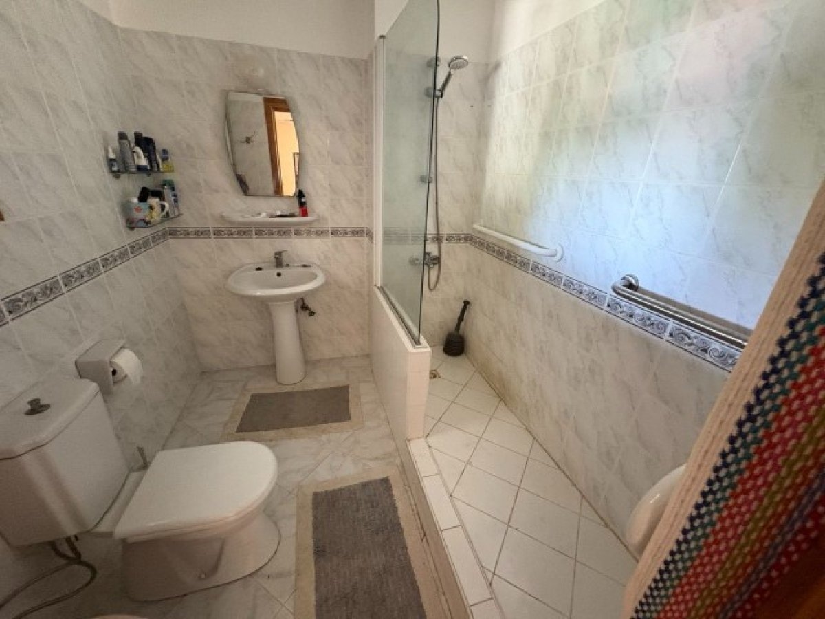 Aile Banyosu / Tuvalet - Ön tarafta buzlu camlı pencereye sahip, iyi aydınlatılmış banyo. Duvara monte su ısıtıcısı, lavabolu makyaj masası, bataryalar, ayna ve alçak seviyeli bir tuvalet ile donatılmıştır. Duvarlar ve zemin seramik karolarla kaplıdır.