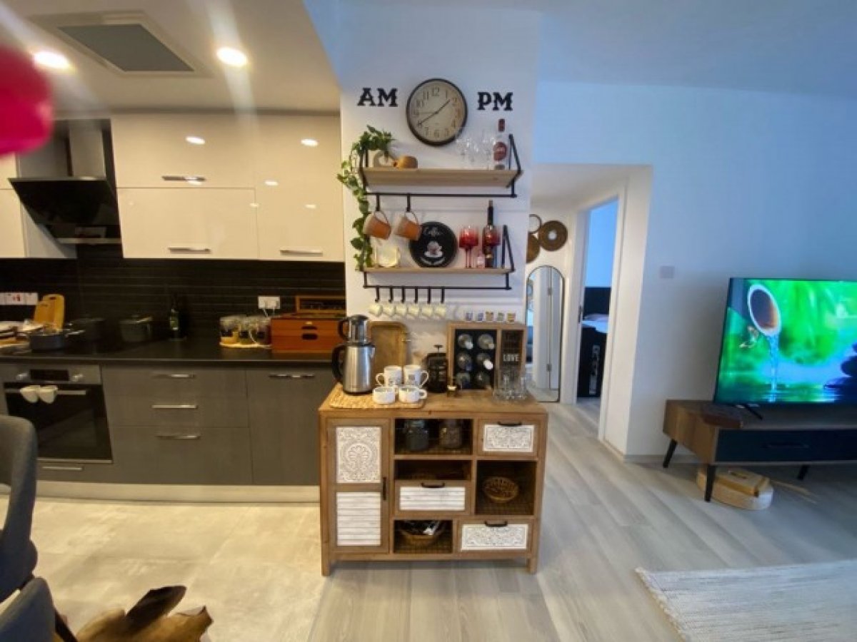 Alsanjak bölgesinde bulunan Olive Hill sitesinde, 88 m² büyüklüğünde, modern tasarımlı lüks bir 2+1 daire satılıktır. Daire tamamen mobilyalıdır ve tüm eşyalarla donatılmıştır. Kendine ait bahçeye çıkışı olan geniş bir terası bulunmaktadır. Site içerisinde ortak yüzme havuzu, jeneratör, otopark ve çocuk oyun alanı mevcuttur. Hem yatırım hem de yüksek kira getirisi için uygundur.