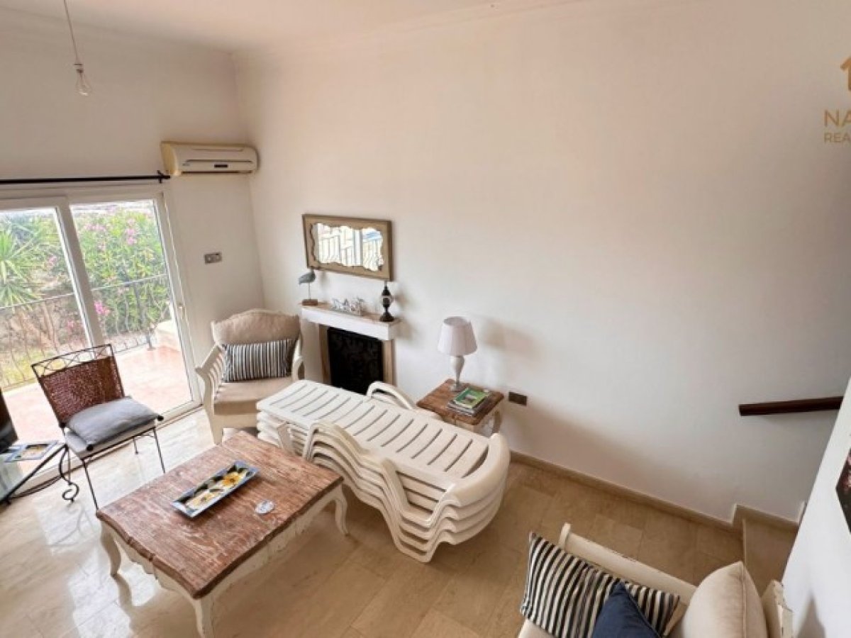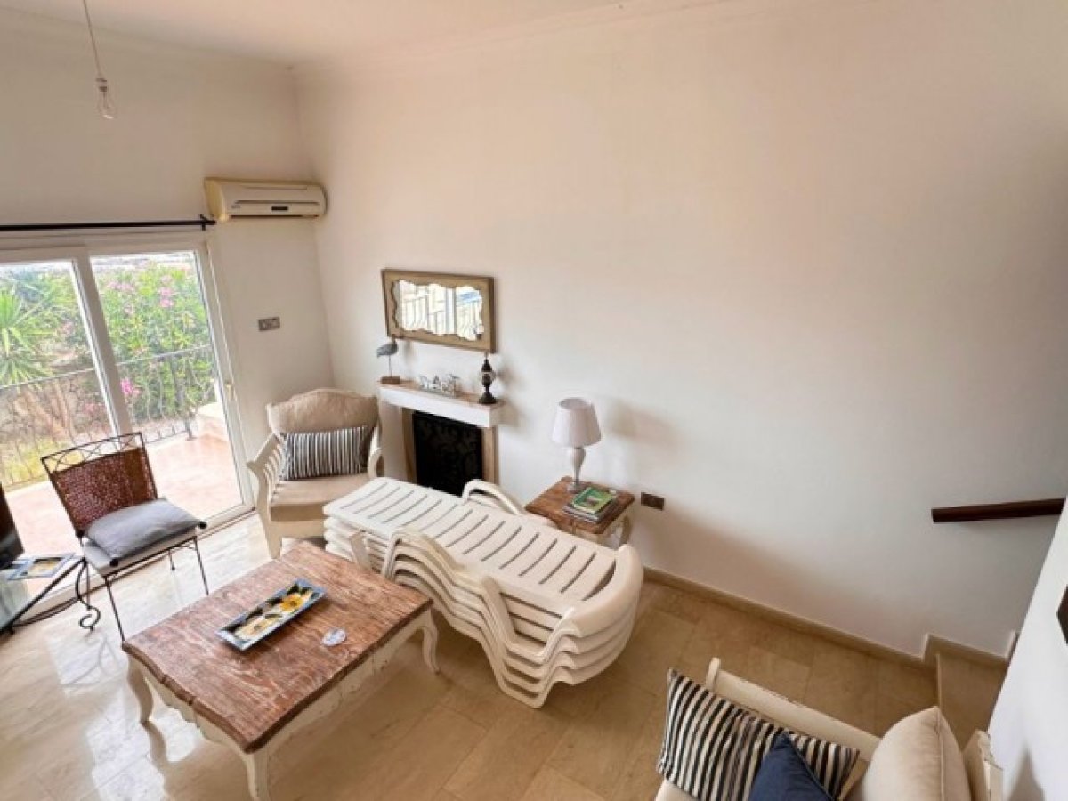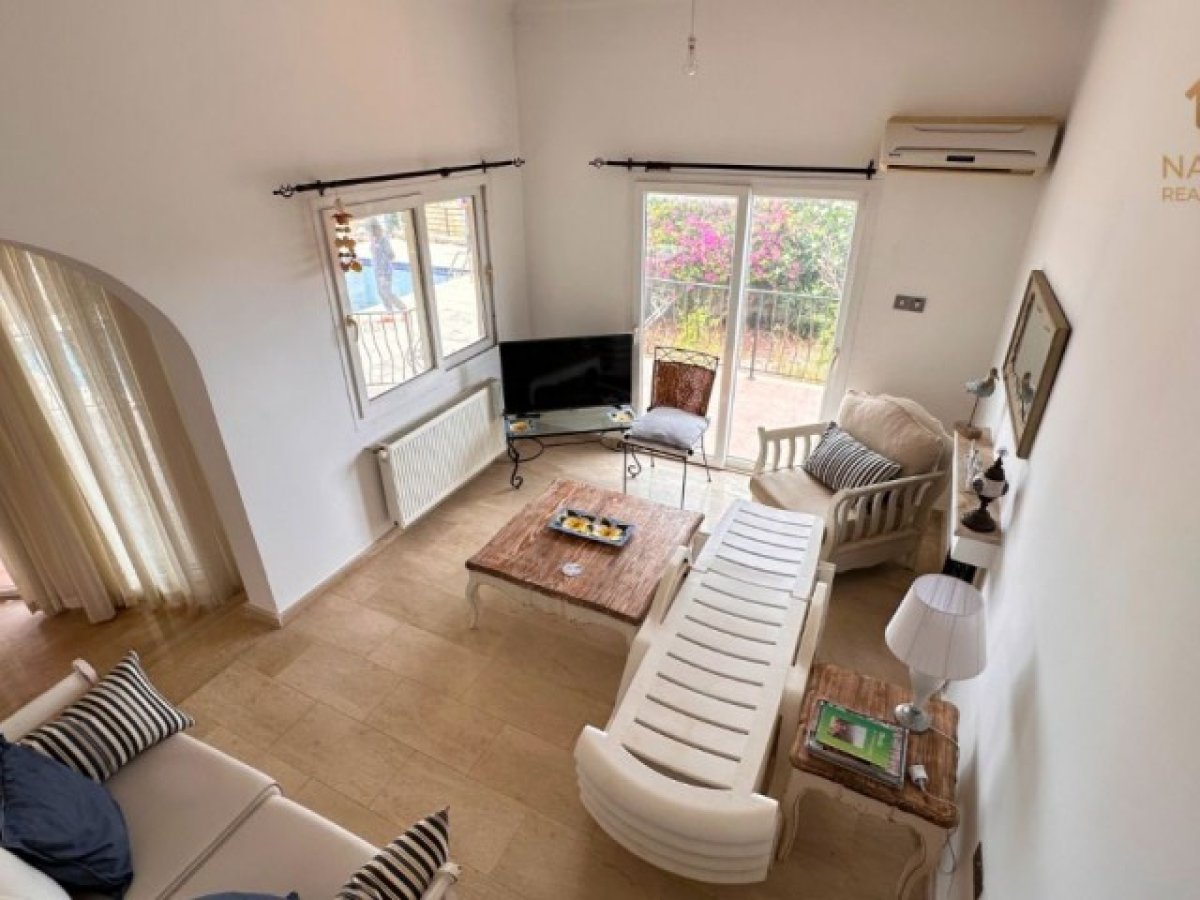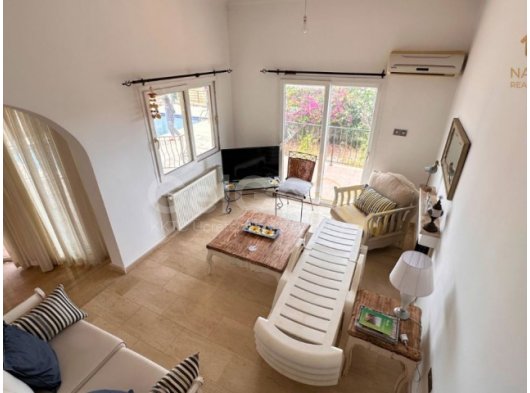 Oturma Odası Ferah ve aydınlık bir alan, deniz manzarası, şömine, klima ve teras ile bahçeye doğrudan çıkış
