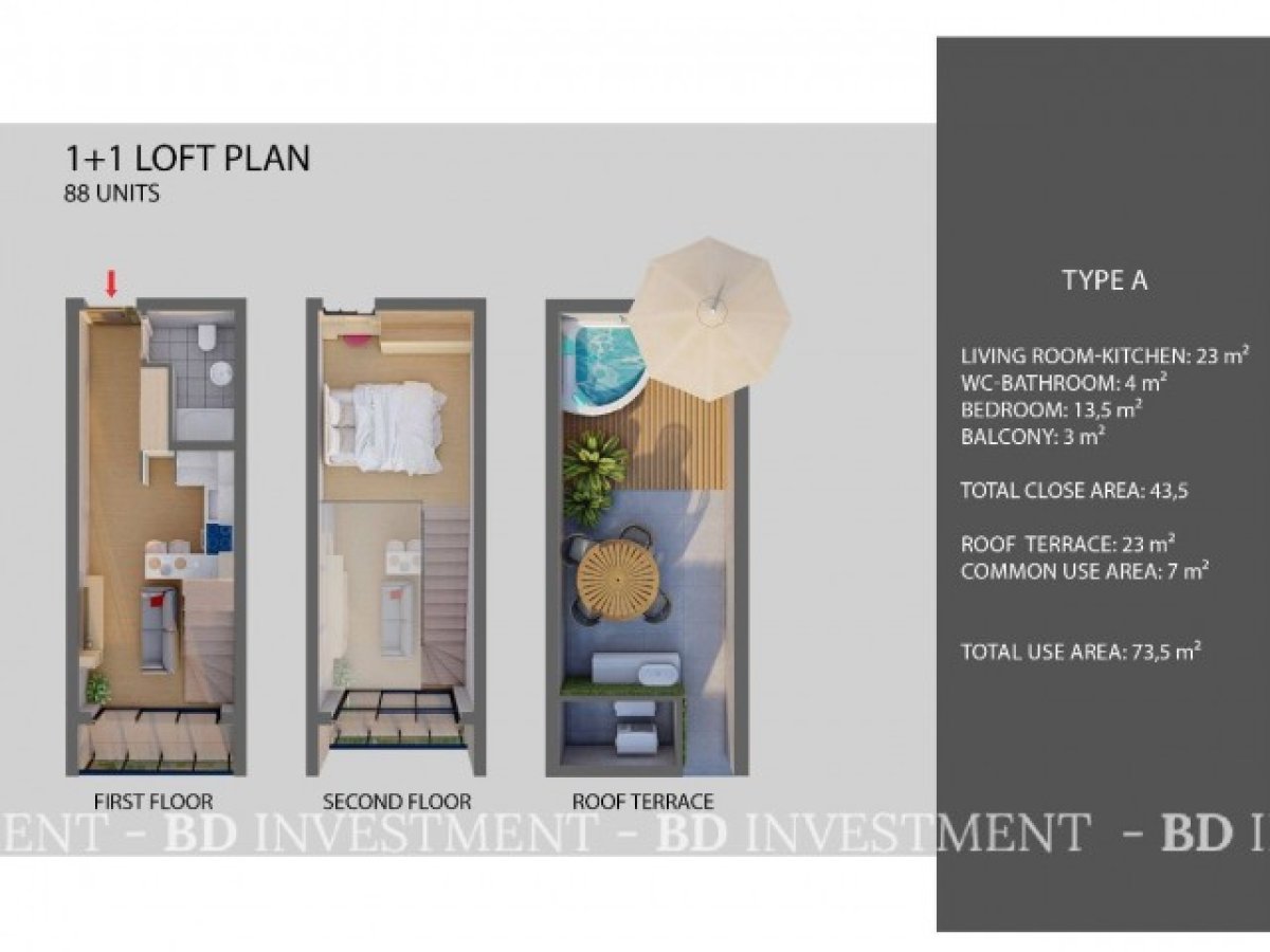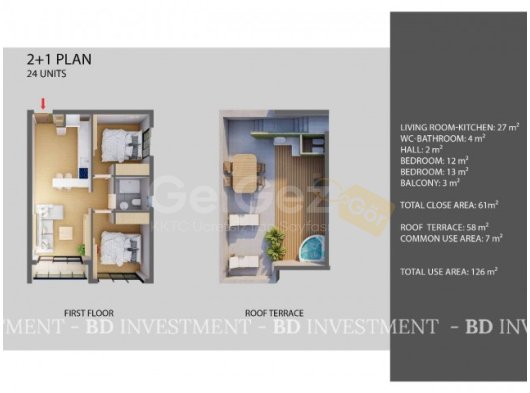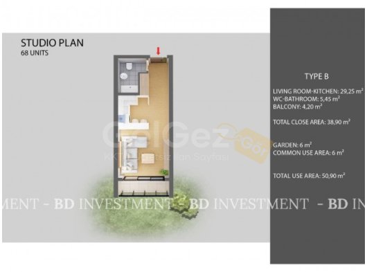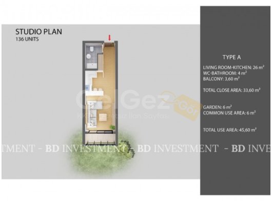Stüdyo , 1+1 ve 2+1 daire seçenekleri 110.000 sterlinden başlayan fiyatlar ile...