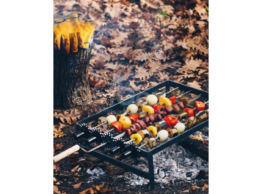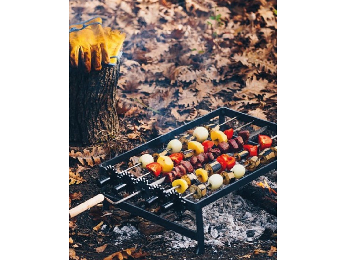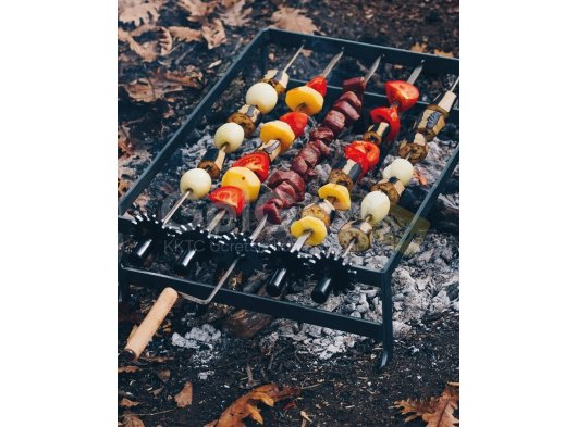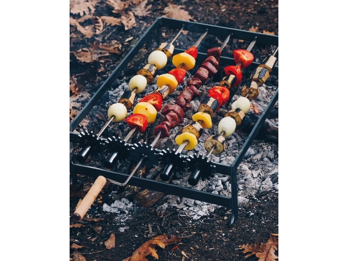 ŞİŞLERE GEÇİRİLEN ETLERİN ÇEVRİLEREK KOLAYCA VE EŞİT ŞEKİLDE PİŞMESİNİ SAĞLAR.