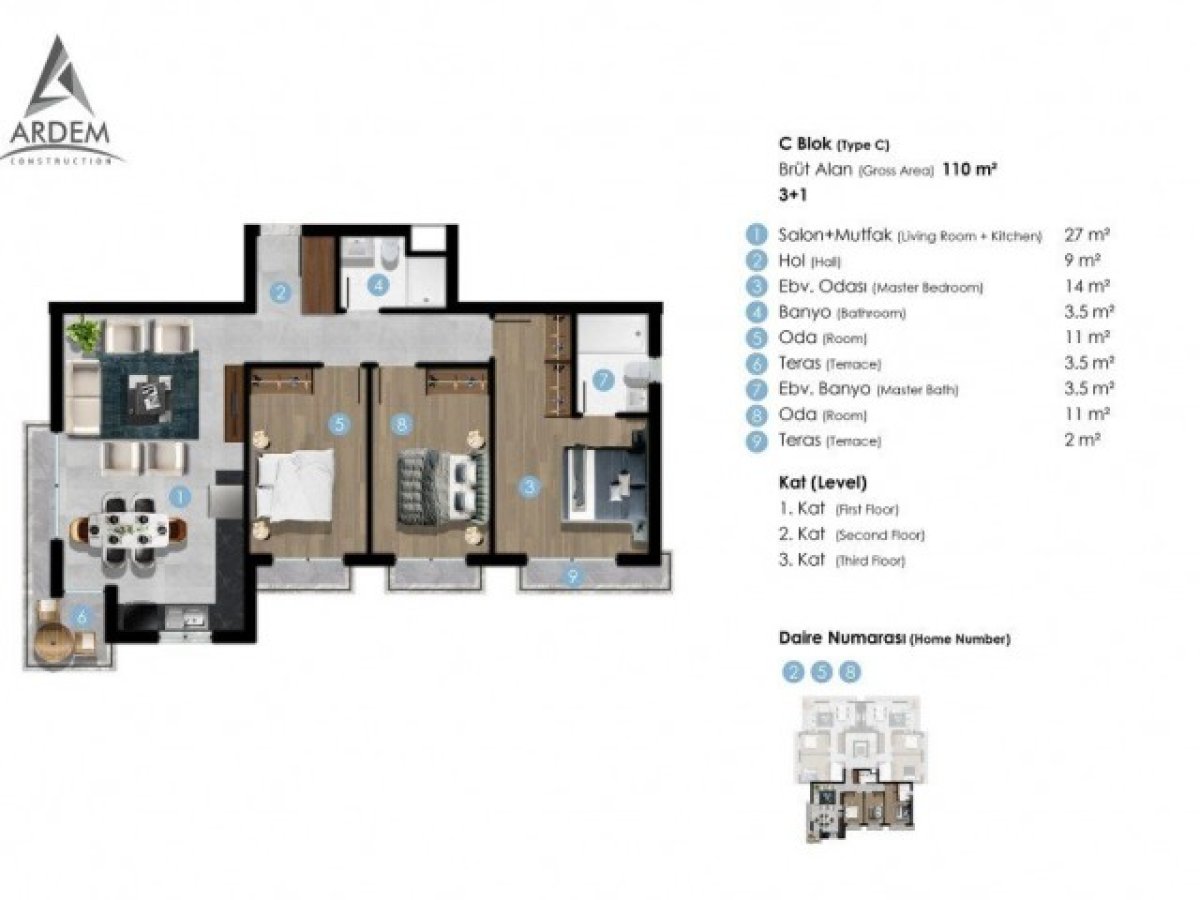 | Oda Sayısı | 2+1 |
