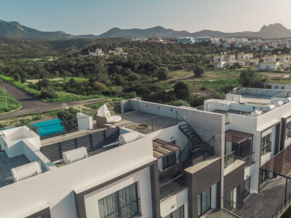 Palm Garden projesi, Korineum Uluslararası Golf Kulübü'ne sadece 2 dakika uzaklıkta, taşınmaya hazır bir mülktür. Deniz ve dağ manzaralı, doğa ile çevrili, 2 veya 3 yatak odalı dairelerin geniş planları ile. Birkaç dinlenme alanı, şezlonglar, zeytin bahçesi ve palmiye ağaçları, şehir dışında yaşamak için ihtiyacınız olan her şey, ancak Girne şehir merkezine sadece 20 dakika uzaklıkta. Bu kompleks, konforlu bir yaşam için her şeye sahiptir: yüzme havuzu, 5 dakika uzaklıkta birkaç plaj, market, eczane, 2 dakikalık yürüme mesafesinde tenis kortu. Sadece konforlu yaşam ve dinlenme için değil, aynı zamanda pasif gelir için de ideal mülkünüz. Size kolaylık sağlamak için, mülkünüzle ilgili tüm bilgileri takip edebileceğiniz bir uygulama geliştirilmiştir.