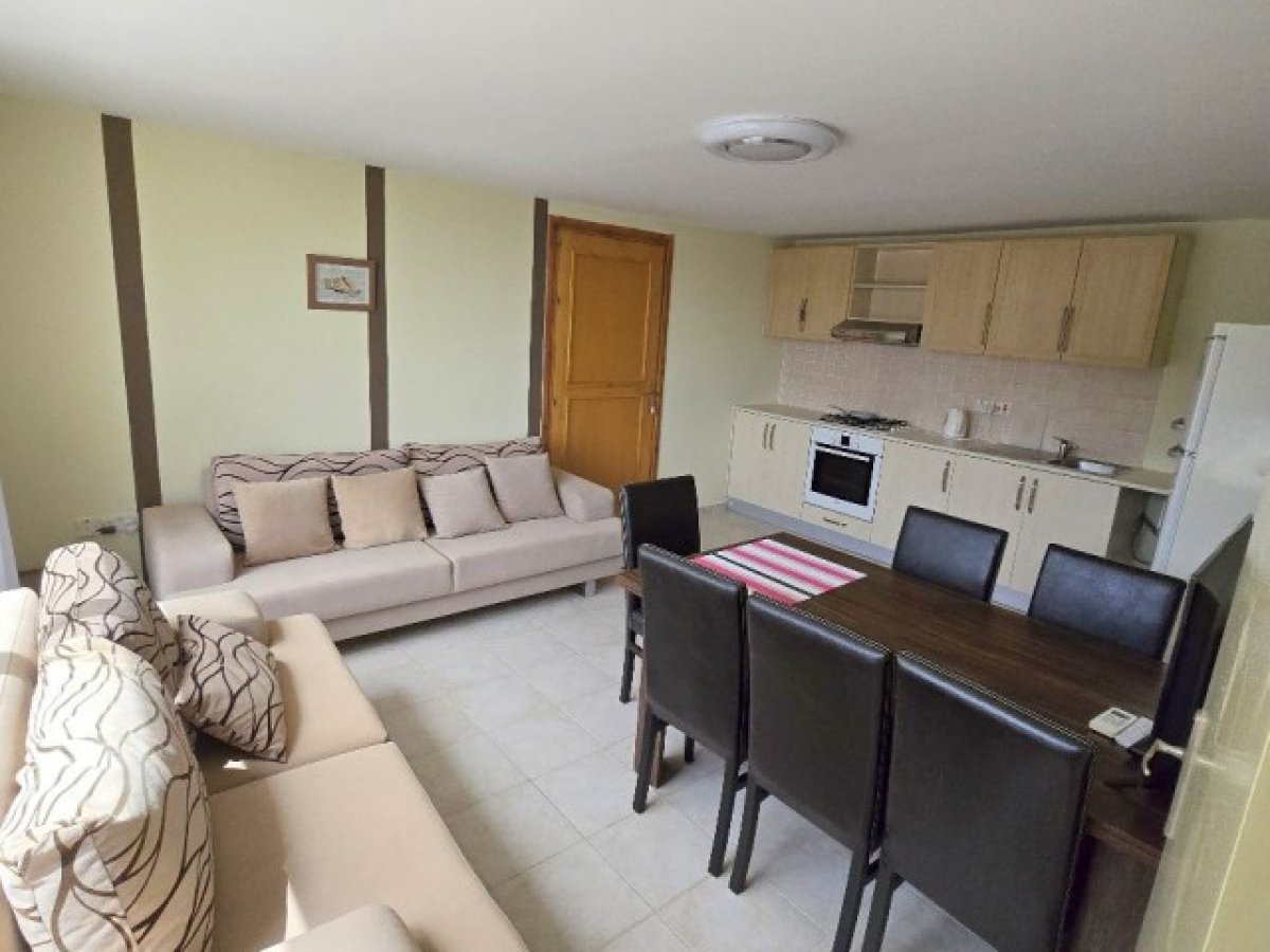 70 m²’lik dairenin açık plan yaşam alanı, geniş aile banyo odası ve ayrıca gömme dolaplı ve klimalı yatak odası bulunmaktadır. Eğer dilerseniz kolaylıkla 2 yatak odalı bir daireye dönüştürülebilir. Daire tam eşyalı olup çift camlı pencereleri vardır.