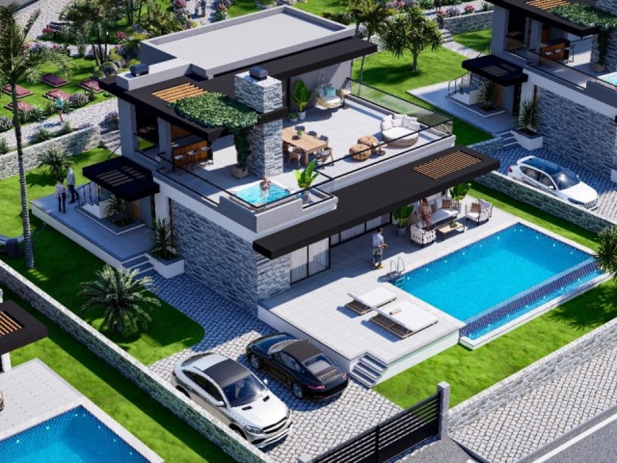 Panoramik 360° manzara, özel havuz ve çatı jakuzisine sahip 4+1 ultra lüks villa — denize sadece 700 metre mesafede!