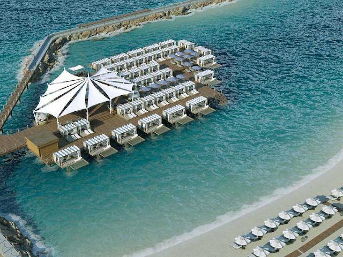 Bar, güneşlenme alanı ve yaz çardakları bulunan SU ÜZERİNDEKİ PATIO.