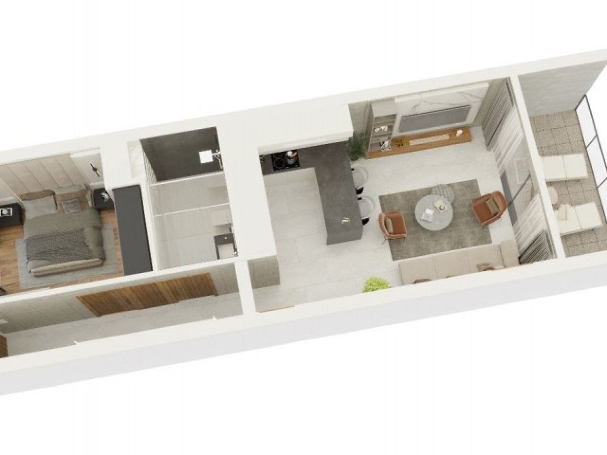 Sende katlı, 1 banyolu, deniz manzaralı. Çatıda mutfak ve barbekü alanı.