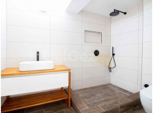 Ana yaşam katında, geniş cam pencerelerden muhteşem deniz manzarasının tadını çıkarmak için tasarlanmış açık plan bir salon, mutfak ve yemek alanı bulunmaktadır. Bu katta ayrıca bir tuvalet ve merkezi ısıtma ve soğutma sistemi bulunmaktadır, bu da yıl boyunca konfor sağlar.