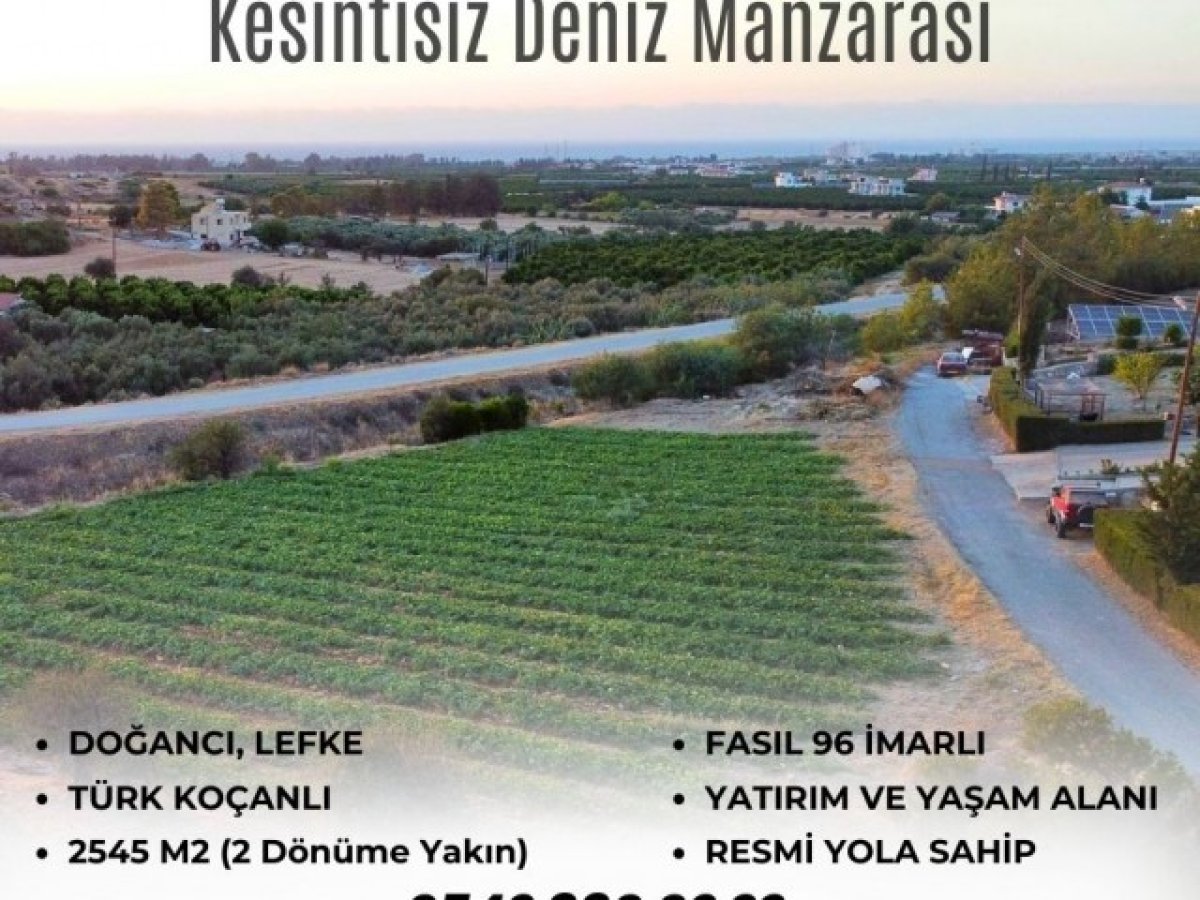 Doğancı/LEFKE 'de kesintisiz deniz manzaralı, elektrik, su, asfalt yol dibinde olan Türk Koçanlı 2 dönüme yakın arazi satılıktır.