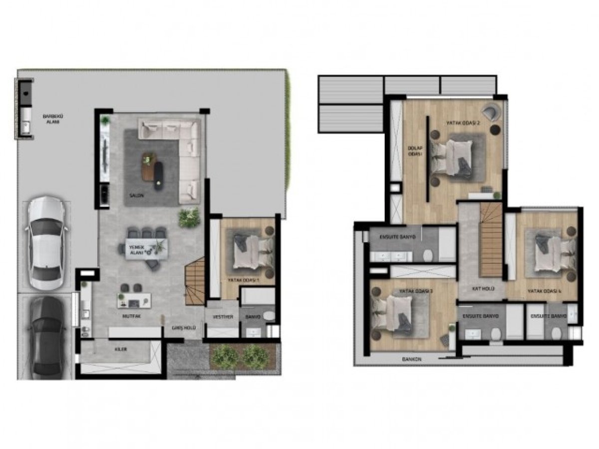 Her odada en-suite banyo, çamaşır odası ve kiler. Tüm odalar ve vestiyerde dolap dahil.