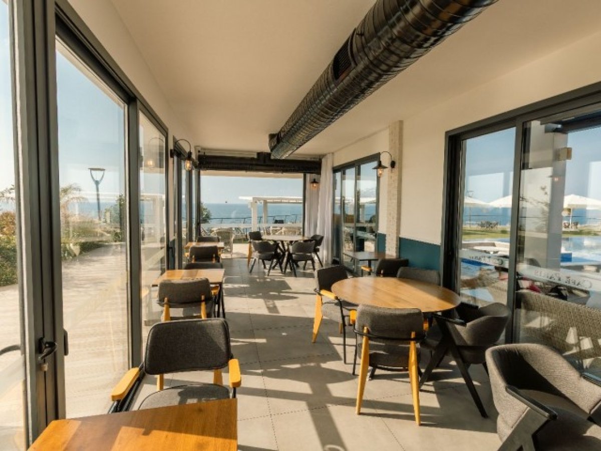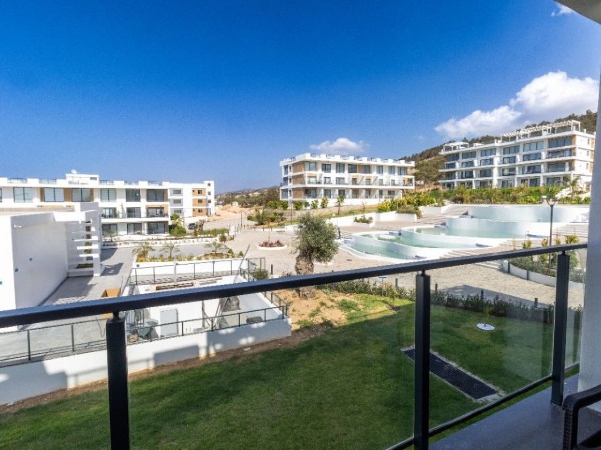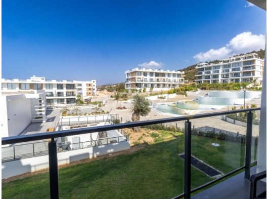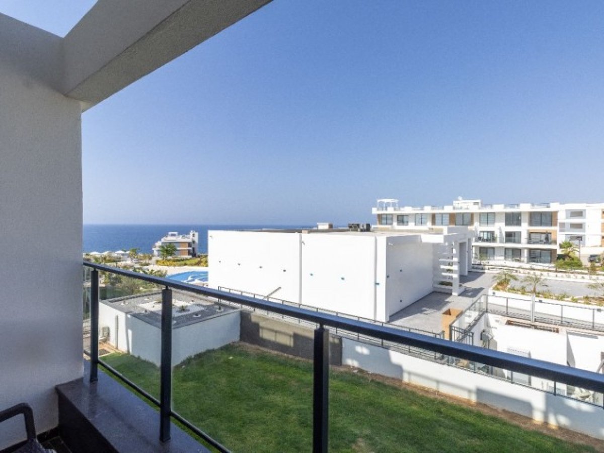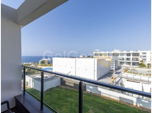 Akdeniz veya havuza bakan nefes kesici manzaralı geniş balkon. Tam konforunuz için masa ve sandalyelerle donatılmıştır.