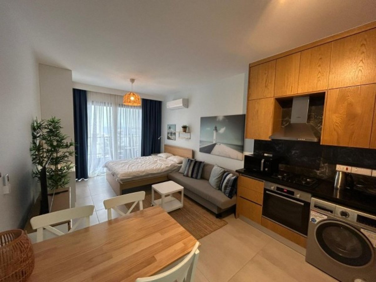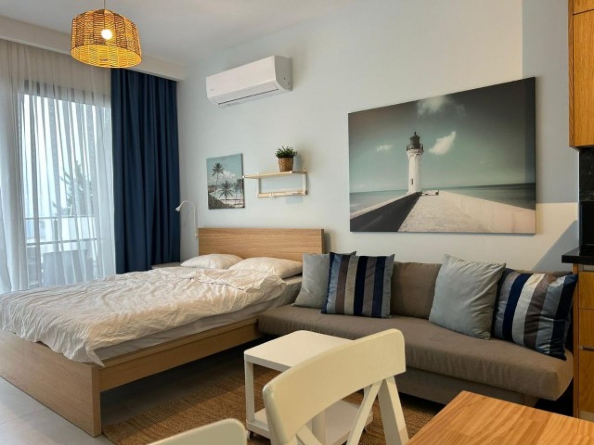 Stüdyo daire; tam donanımlı ve mobilyalı mutfak, oturma alanı ve uyku alanı sunmaktadır.