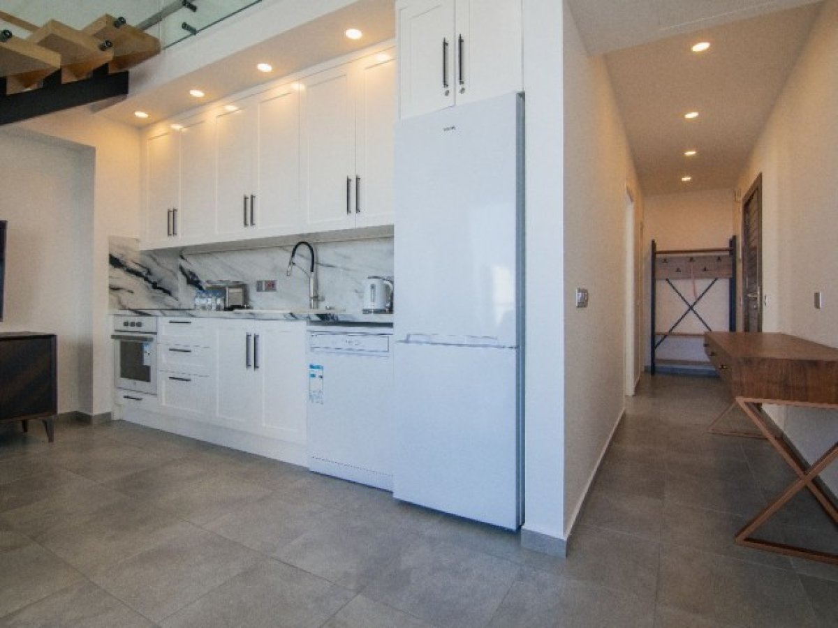 Daire tamamen mobilyalıdır ve taşınmaya veya kiraya verilmesine hazırdır. Fiyat, tüm mobilya ve beyaz eşyaları içermektedir. Çatı terası mevcuttur ve balkondan muhteşem gün batımı manzaraları görülür.