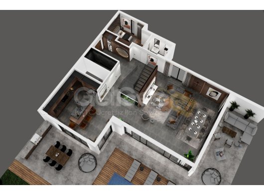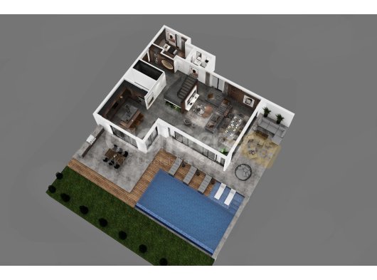 Özel yüzme havuzu ve opsiyonel açık hava jakuzisi veya şömine
