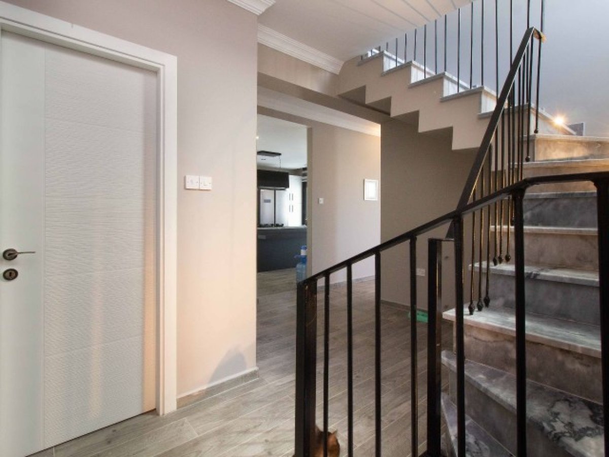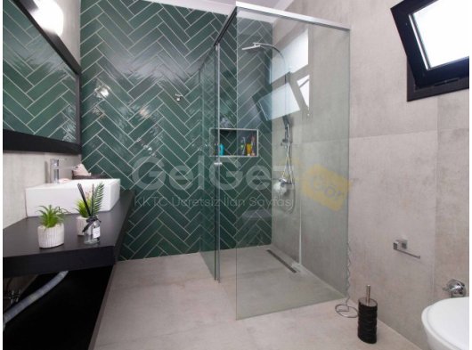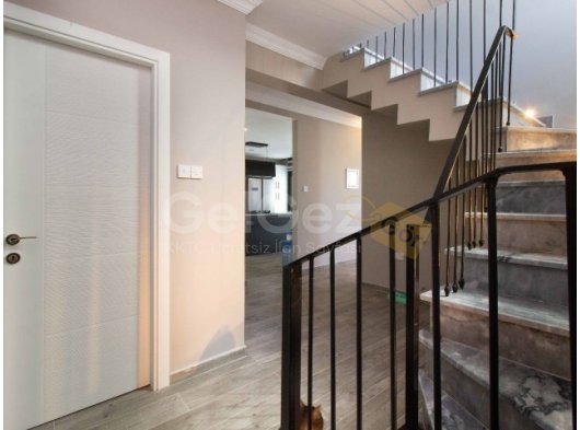 Sakin bir konumda yer alan, hem dağ hem de deniz manzarasına sahip bu 3 yatak odalı muhteşem villaya hoş geldiniz. Girişte sizi zarif gri mermerle kaplı merdiven karşılayacak. İçeri girdiğinizde konukların konforu için girişete bulunan bir misafir banyosuna sahiptir. Devam edildiğinde, sol tarafta pratiklik sağlayan bir çamaşır odası bulunmaktadır.
