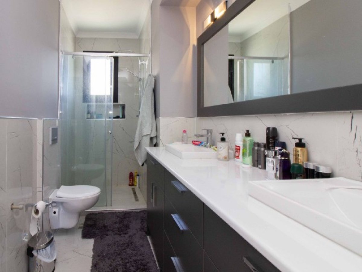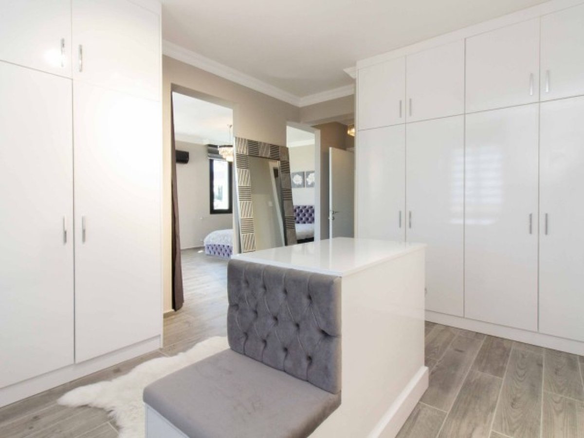 Birinci katta, her biri konfor ve huzur sunan cömert büyüklükte iki oda bulunmaktadır. Yeşil fayanslı duşakabin, ortak banyoya doğal bir zarafet katmaktadır. Koridorun sonunda yer alan ebeveyn yatak odası, parlak beyaz gardıroplarla zarif bir şekilde donatılmış, bol miktarda saklama alanı sağlayan geniş bir gömme dolaba sahiptir. Balkona çıktığınız zaman nefes kesici deniz manzarasıyla karşılaşacaksınız.