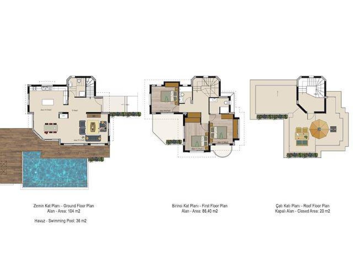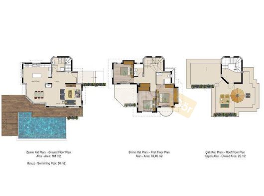 Girne Alsancak Son iki Villa 3+1 Yüzme Havuzlu 195 m² havuz 9x4