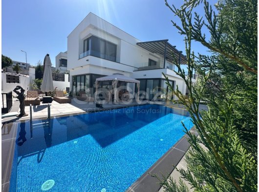Özel yüzme havuzu ve geniş peyzajlı bahçe