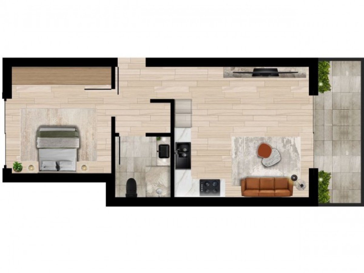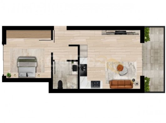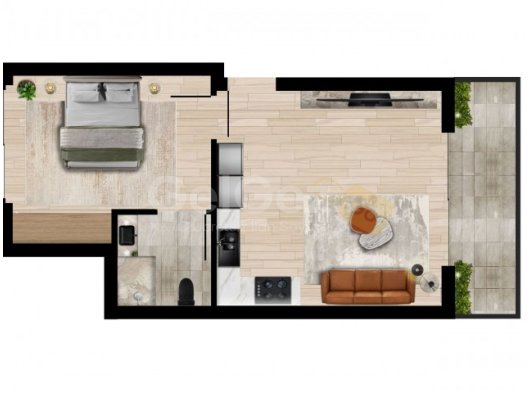 • 1+1 penthouse daireler: 36–46 m² iç alan + 30 m² özel çatı terası