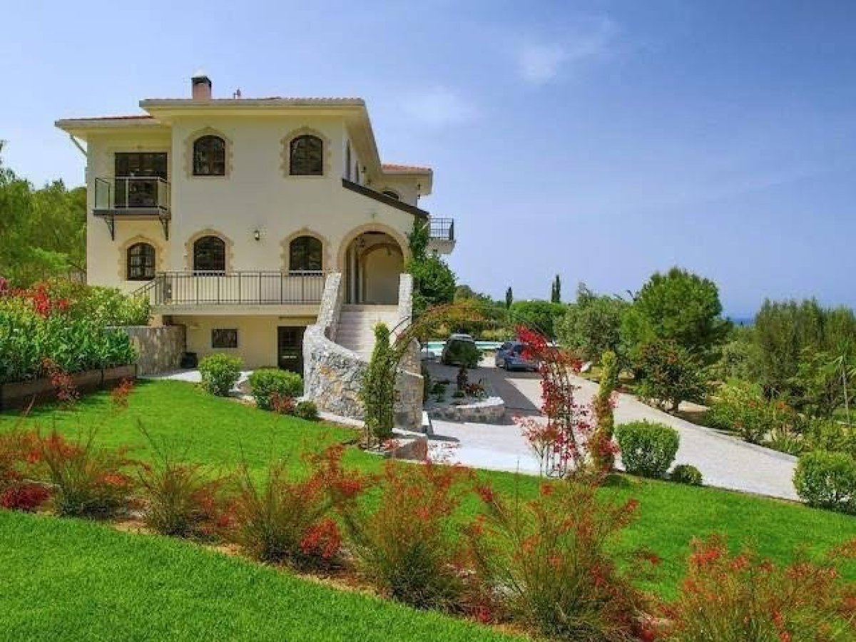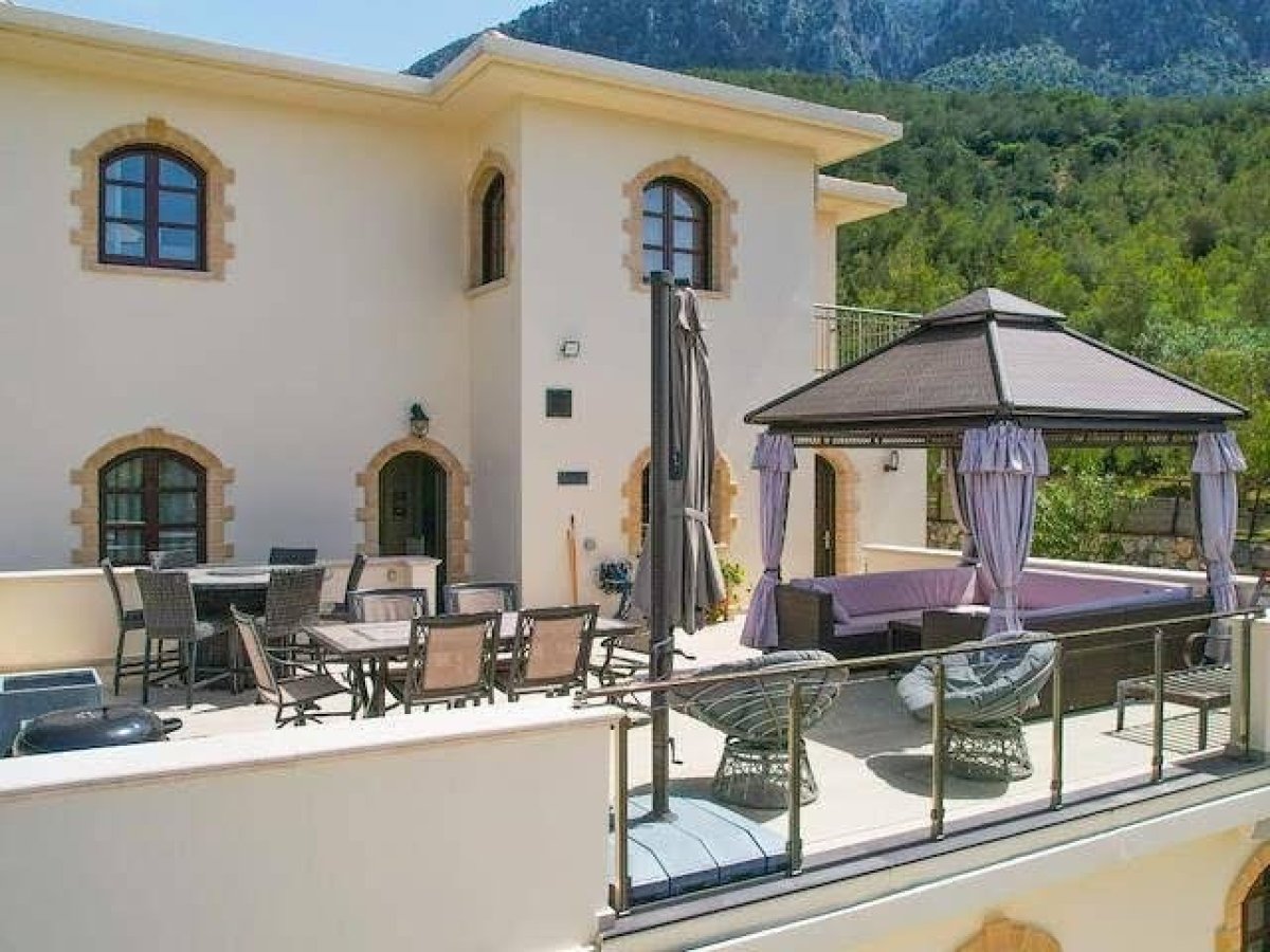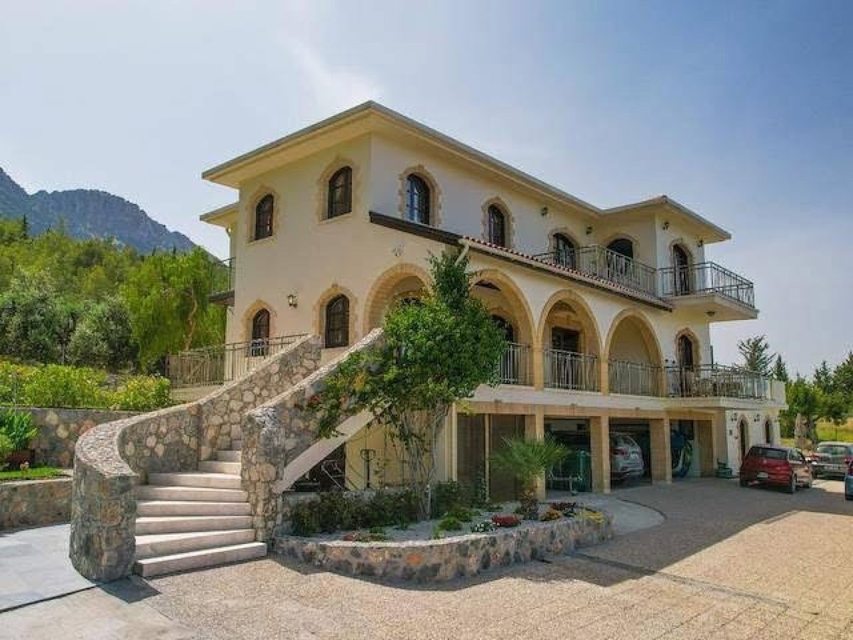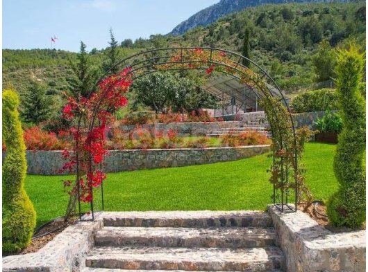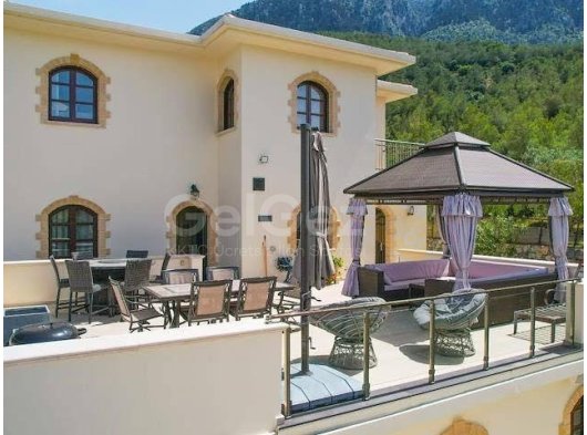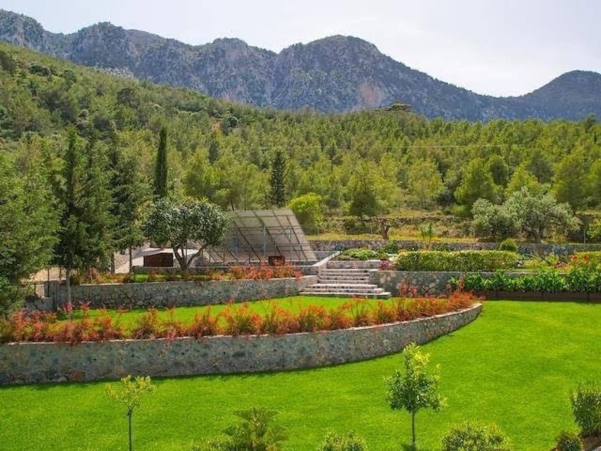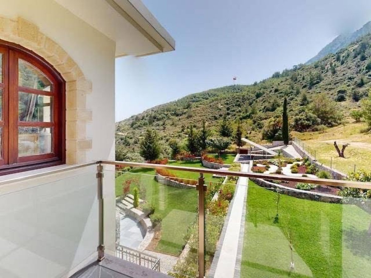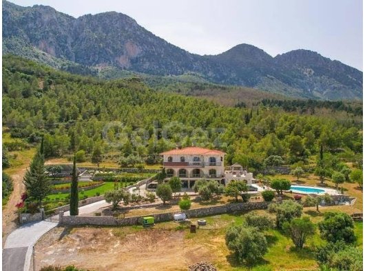 Girne Lapta Bölgesinde 4 Dönüm İçerisinde Doğa ile İç İçe Muhteşem Dağ ve Deniz Manzarasına Sahip Özel Havuzlu Lüks 5 Yatak Odalı Villa Satılık