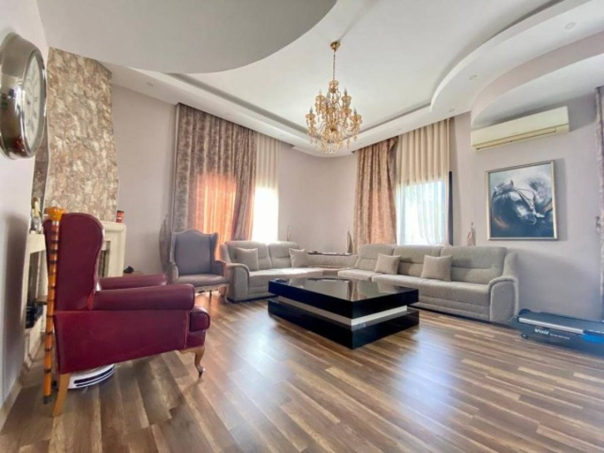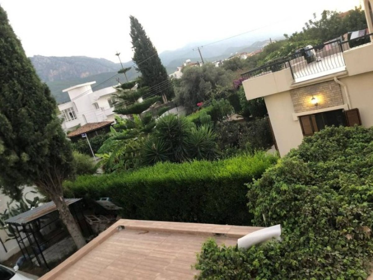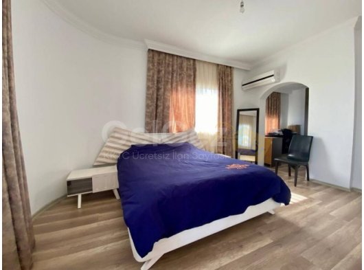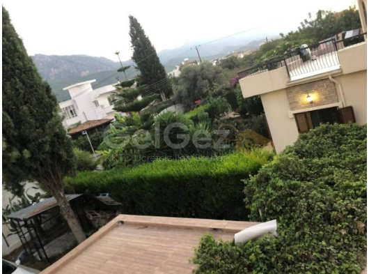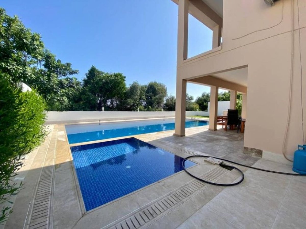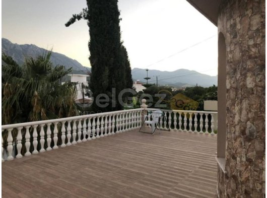 Dış Alan Bilgi: iki taraflı bahçe, palmiye ağaçları, iki çeşit havuz yetişkin 6x12m ve çocuk havuzu 3×2.5m, kapalı ve acık garaj, alt ve üst katta geniş teras, dağ ve deniz manzaralı