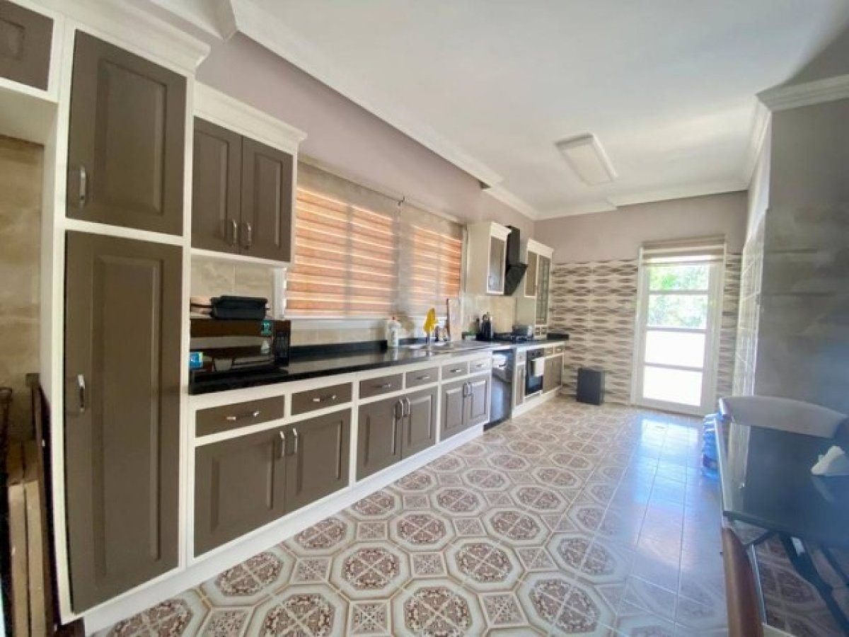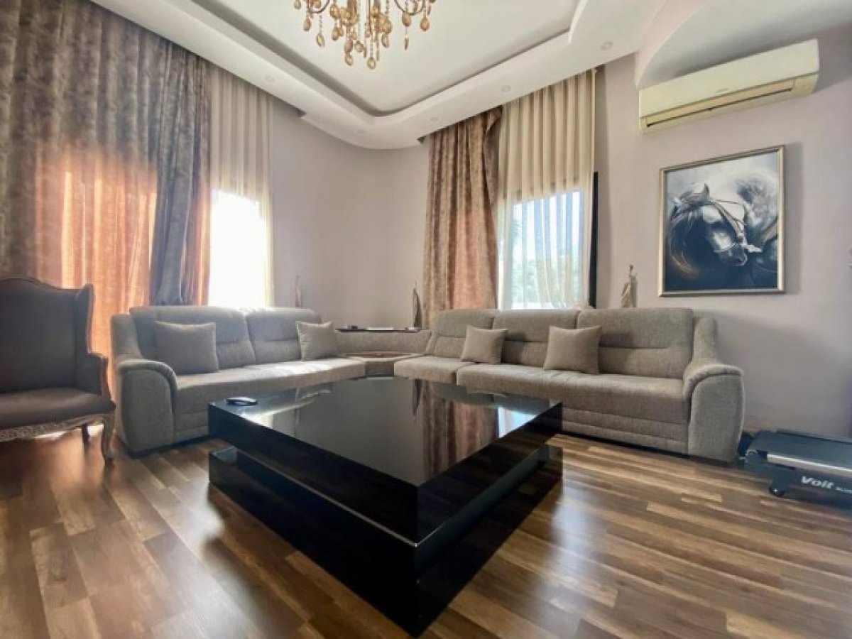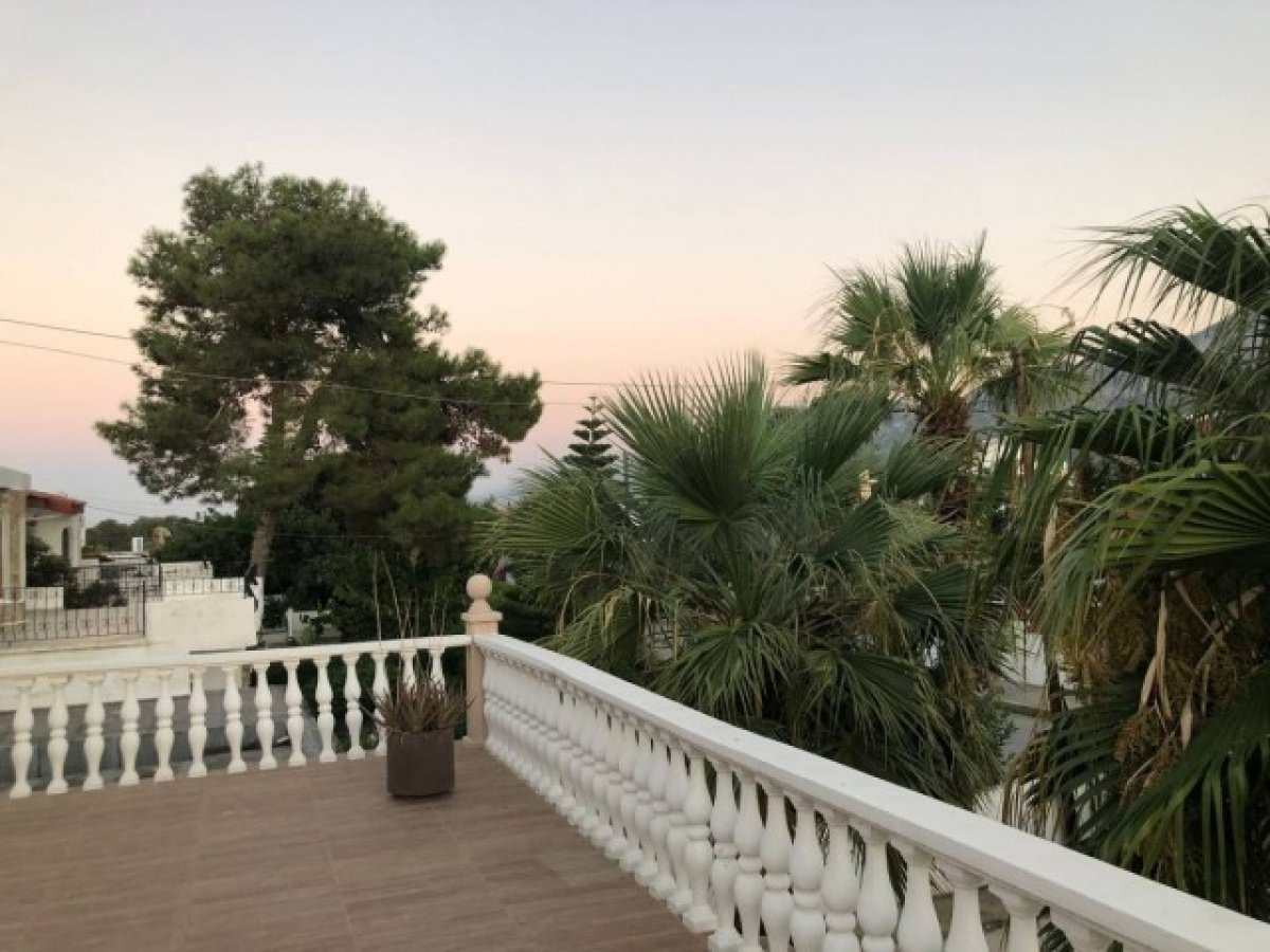 Dış Alan Bilgi: iki taraflı bahçe, palmiye ağaçları, iki çeşit havuz yetişkin 6x12m ve çocuk havuzu 3×2.5m, kapalı ve acık garaj, alt ve üst katta geniş teras, dağ ve deniz manzaralı