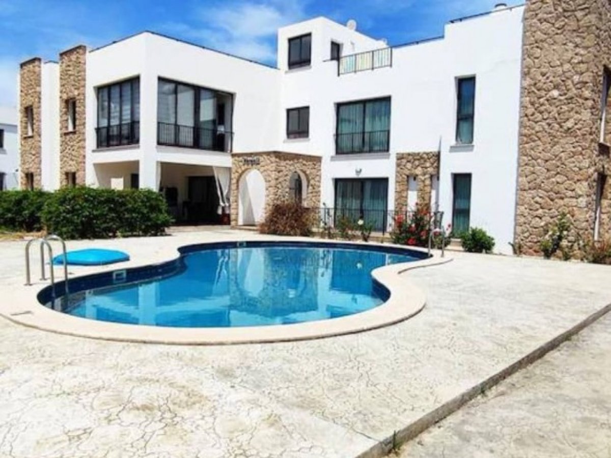 Girne Merkeze araçla 5 dakika havuzlu site içerisinde muhteşem keyifli müstakil ev tadında 2 katlı binanın 2.katı