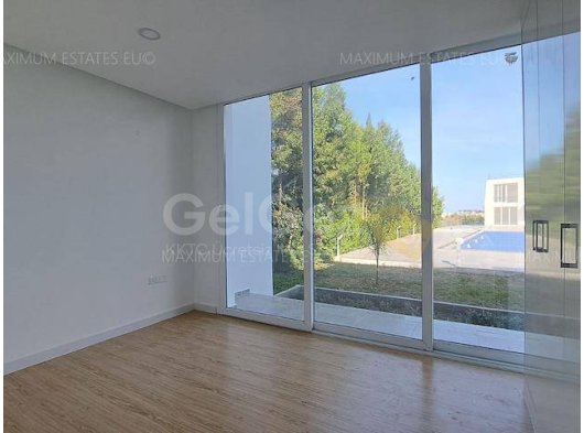 - Havuz terasına açılan tavandan tabana cam kapılara sahip salon