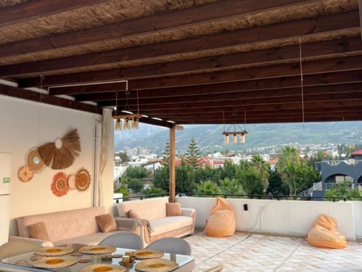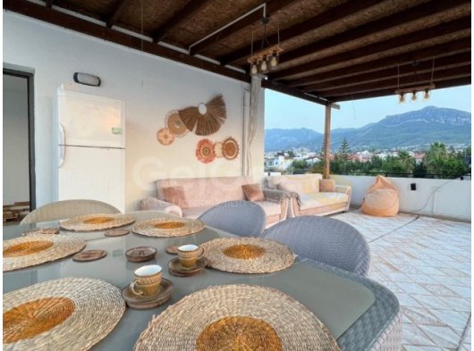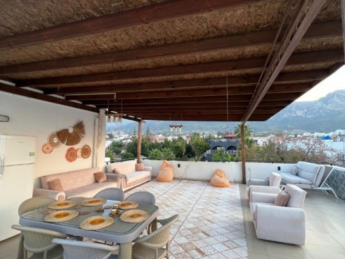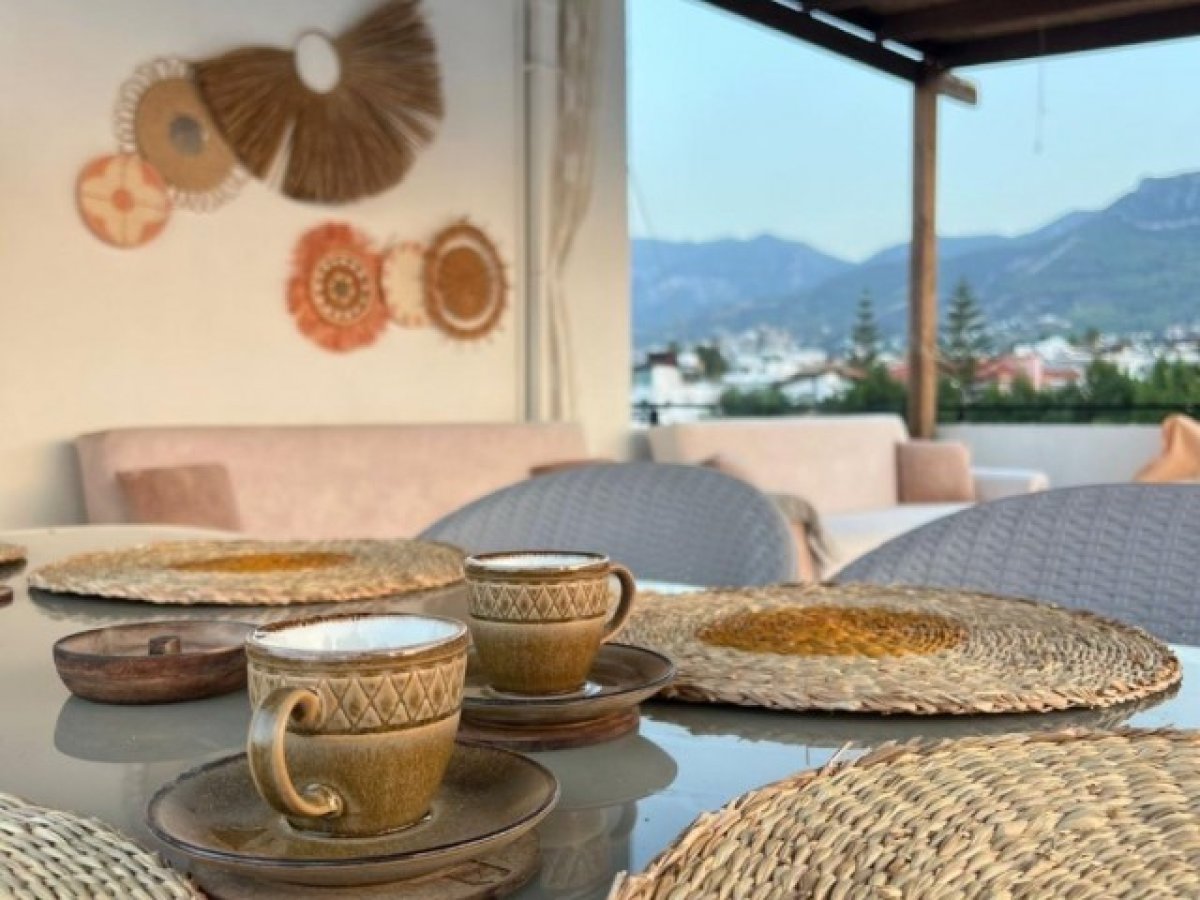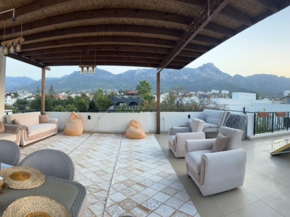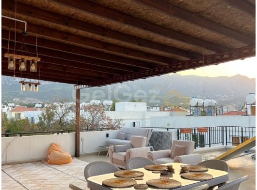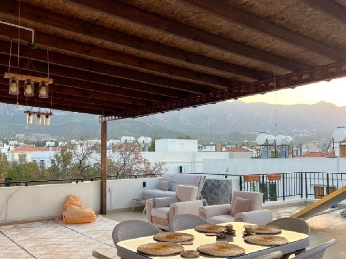 Girne zeytinlik bölgesinde 92 metrekare net ve 80 metre² teraslı 2 + 1 satılık penthouse daire deniz manzaralı tüm olanaklara yürüme mesafesinde full eşyalı satılık