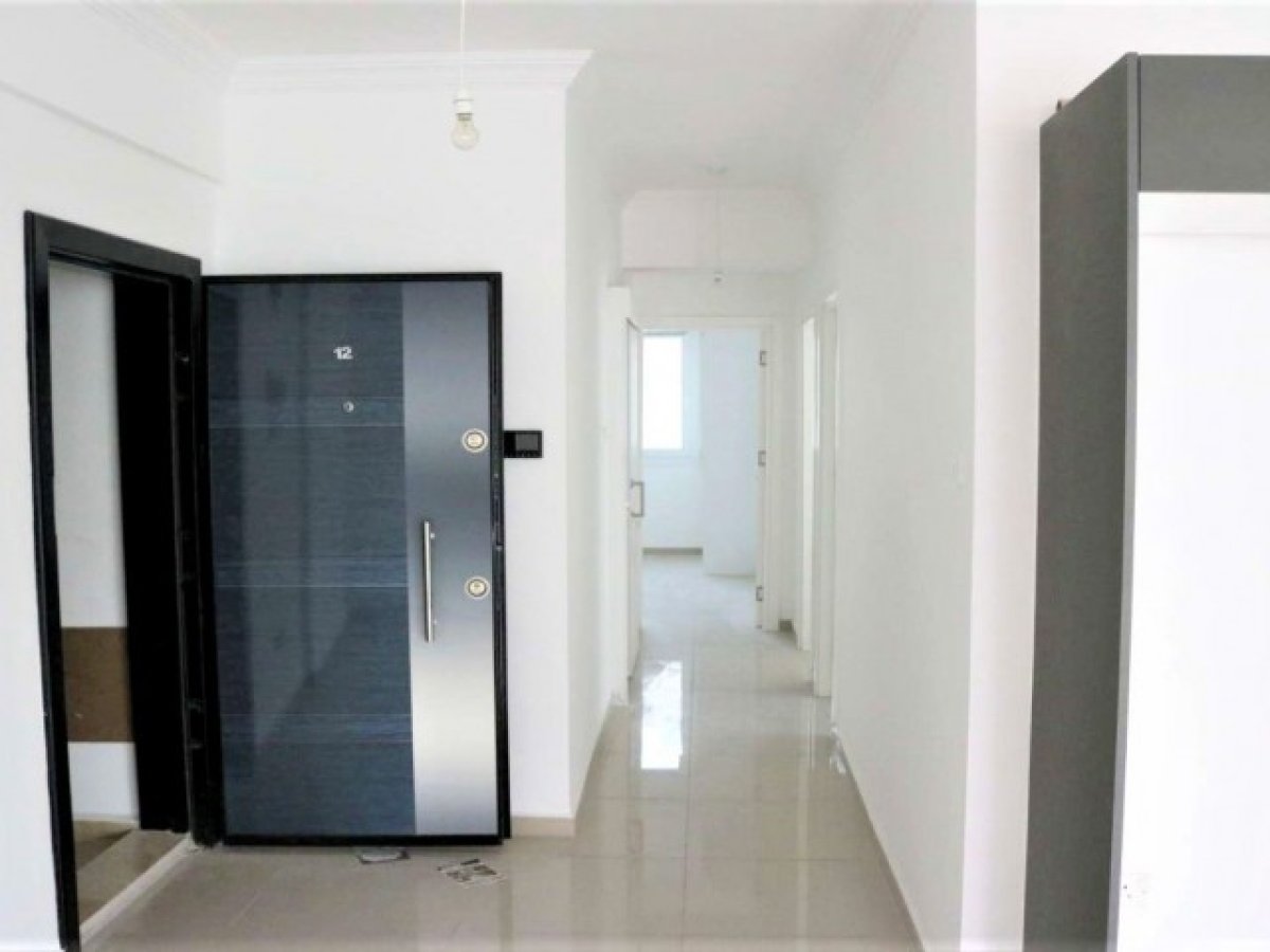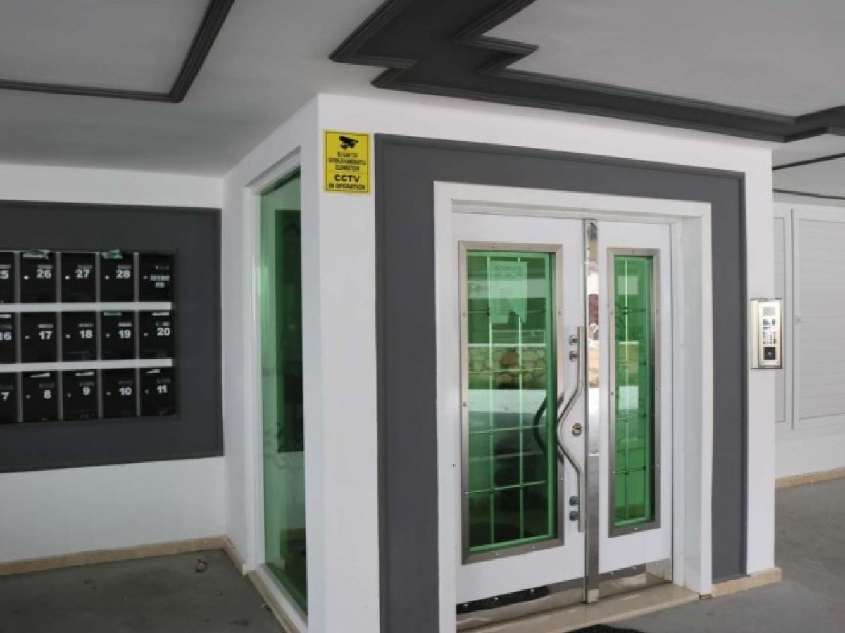 Giriş Holü Parlak çelik kapı, interkom sistemi ve parlak fayans zemin ile erişim.