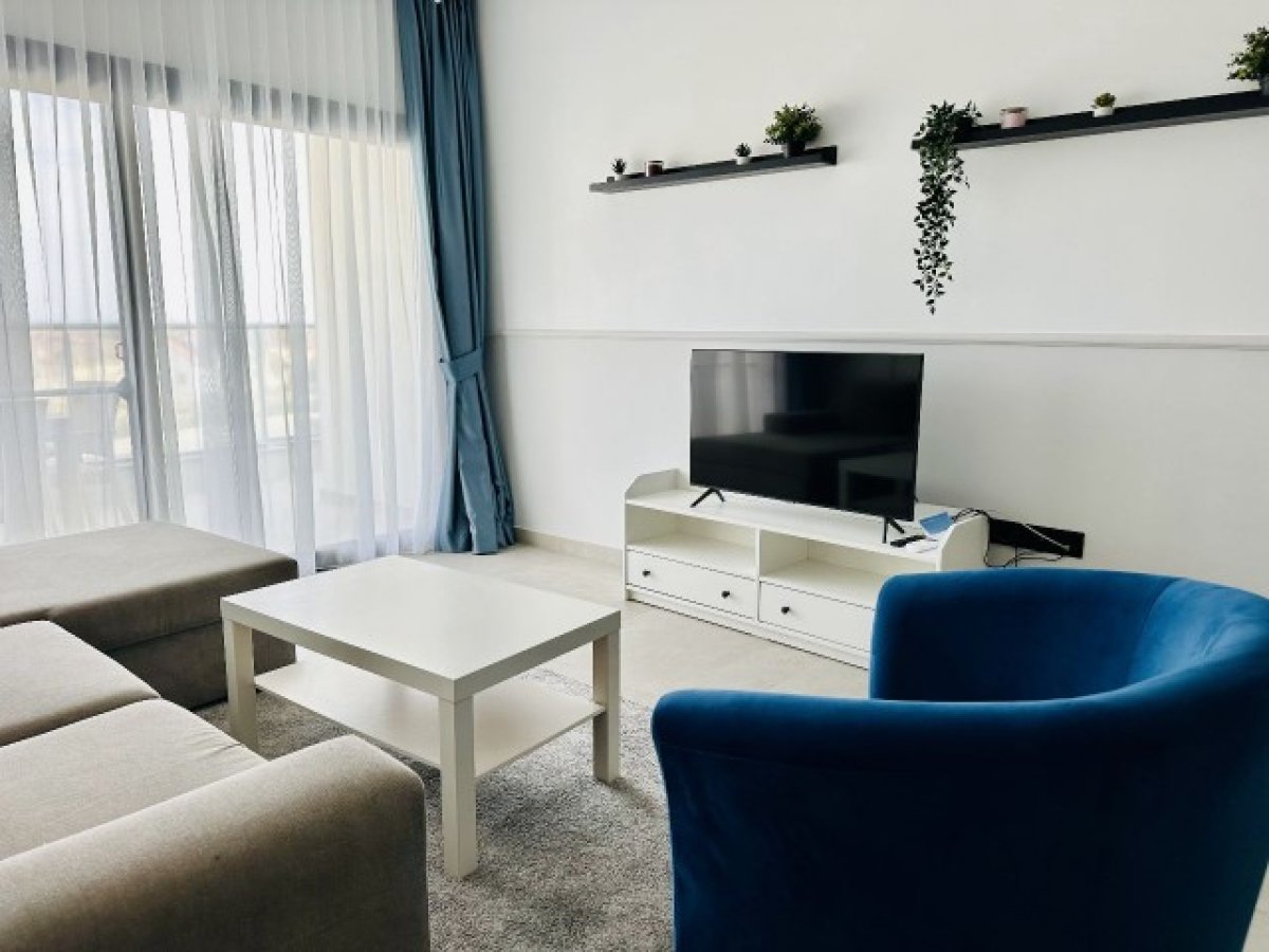 Daire tam donanımlı ve mobilyalı mutfak, oturma alanı ve yatak odaları sunmaktadır.