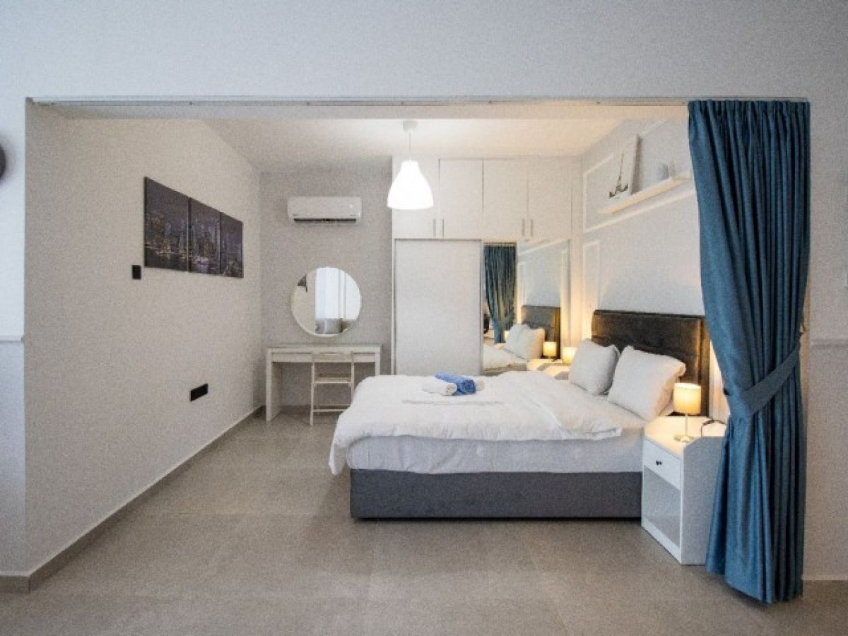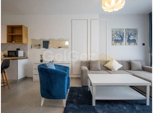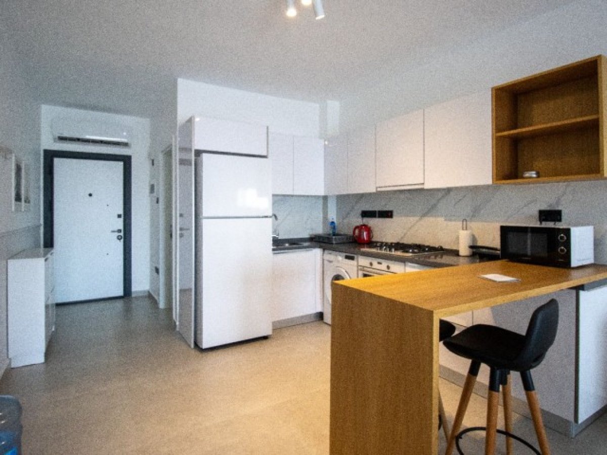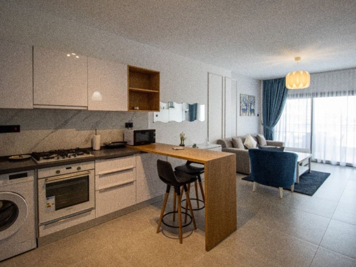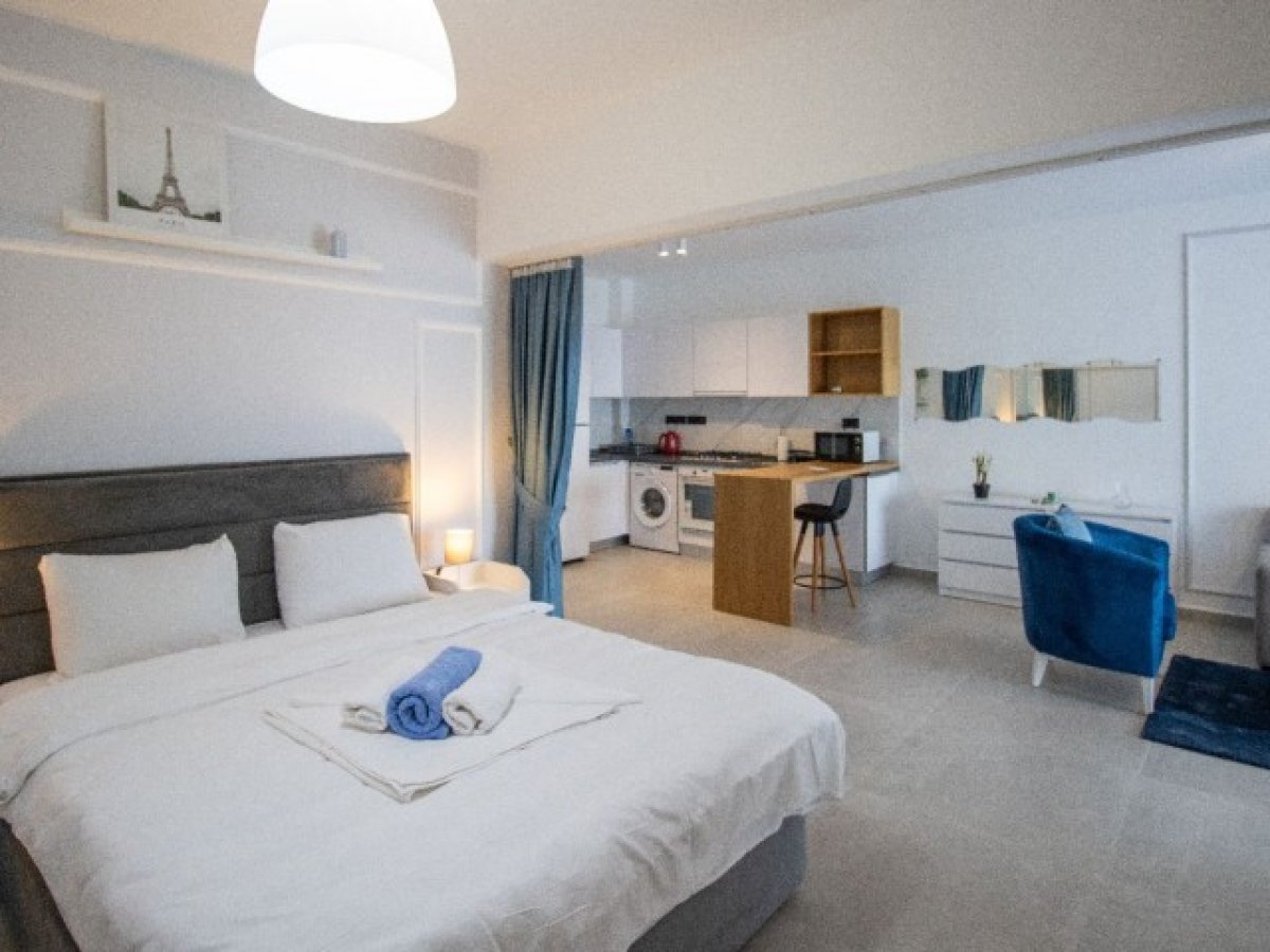 Daire tam donanımlı ve mobilyalı mutfak, oturma alanı ve yatak alanı sunmaktadır.