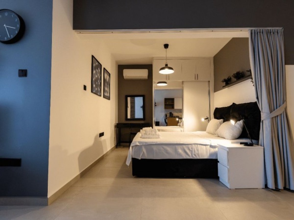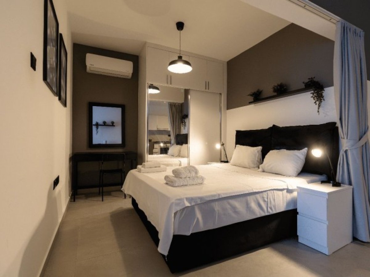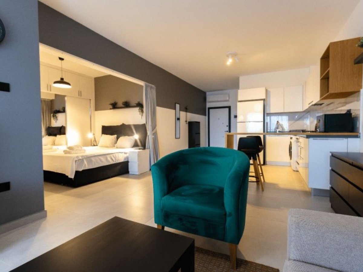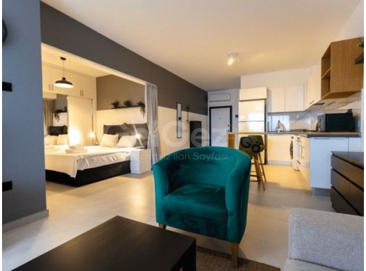 Daire tam donanımlı ve mobilyalı mutfak, oturma alanı ve yatak alanı sunmaktadır.