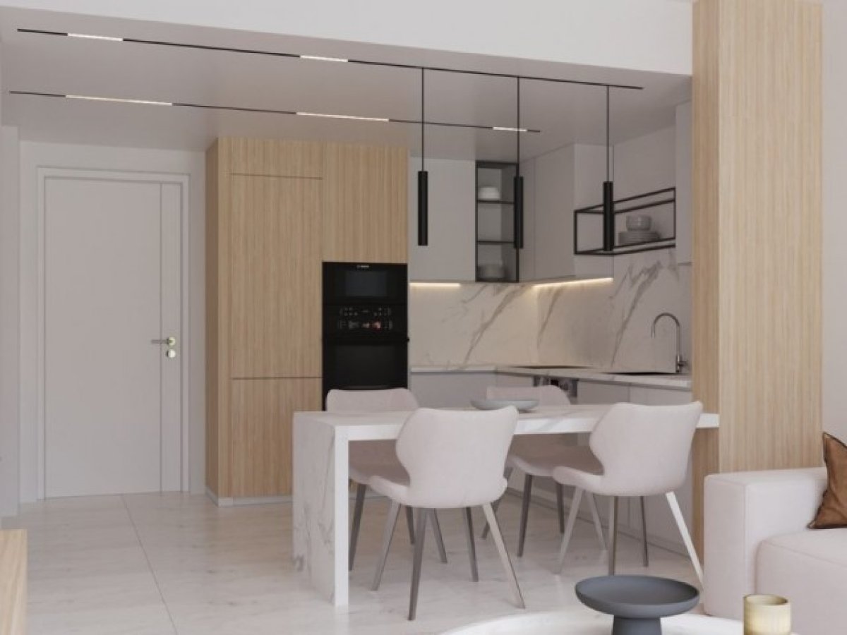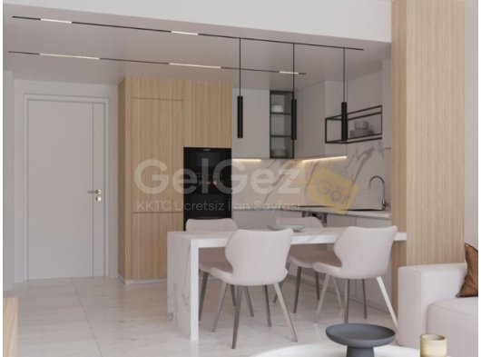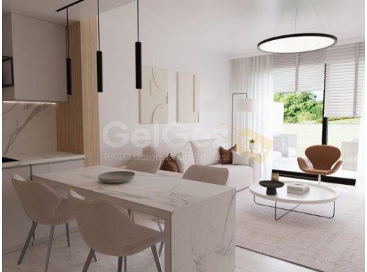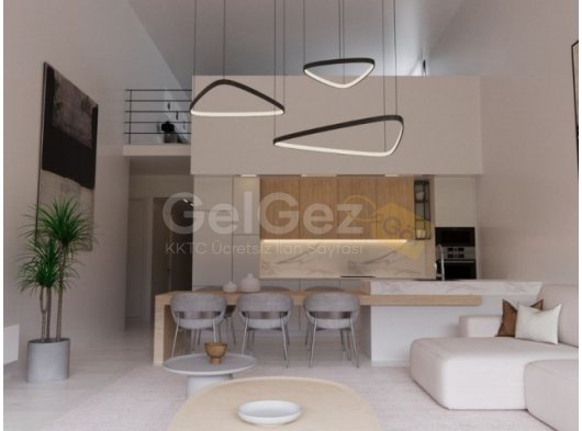 Courtyard Platinum Projesi, İskele'de 1+1 Loft SatılıkDaire Tipi: 69 m² 1+1 loft, 2 banyo ve yeşil alana bakan manzara