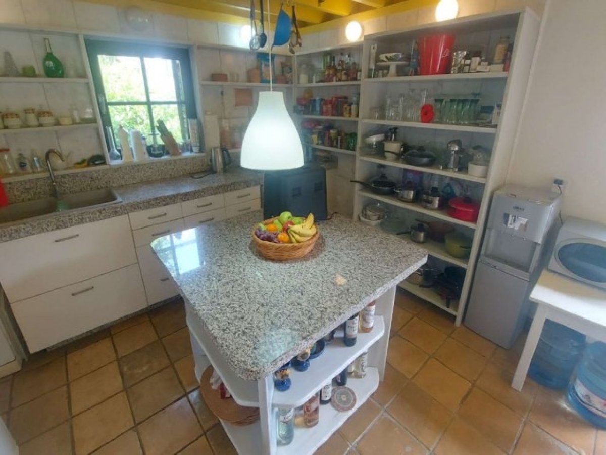 Mutfak/Kahvaltı Odası 6,75 m x 3,35 m - Yan ve arka tarafta pencereler ve yükseltilmiş kahvaltı terasına açılan çift açılır kapılar sunan, üç cepheli, büyüleyici bir ankastre mutfak, harika bir Kıbrıs manzarası, granit tezgahlı çeşitli ankastre raf üniteleri, modern ve kullanışlı bir alan kombinasyonu, kahvaltı masası için alan, ortada ada çalışma alanı, karo zemin.