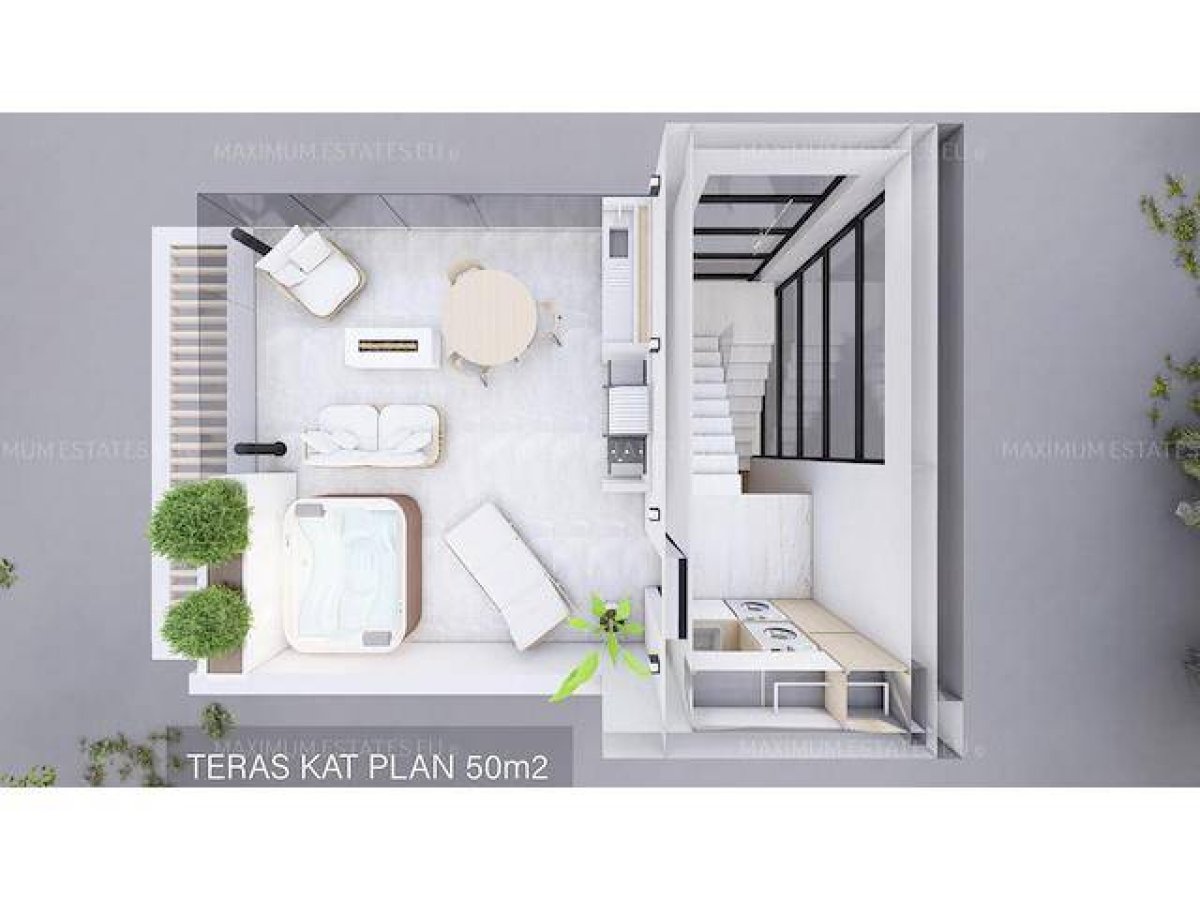Özel Çatı Terası: Muhteşem manzaraların keyfini çıkarın ve kendi özel çatı katı huzur alanınızda rahatlayın.