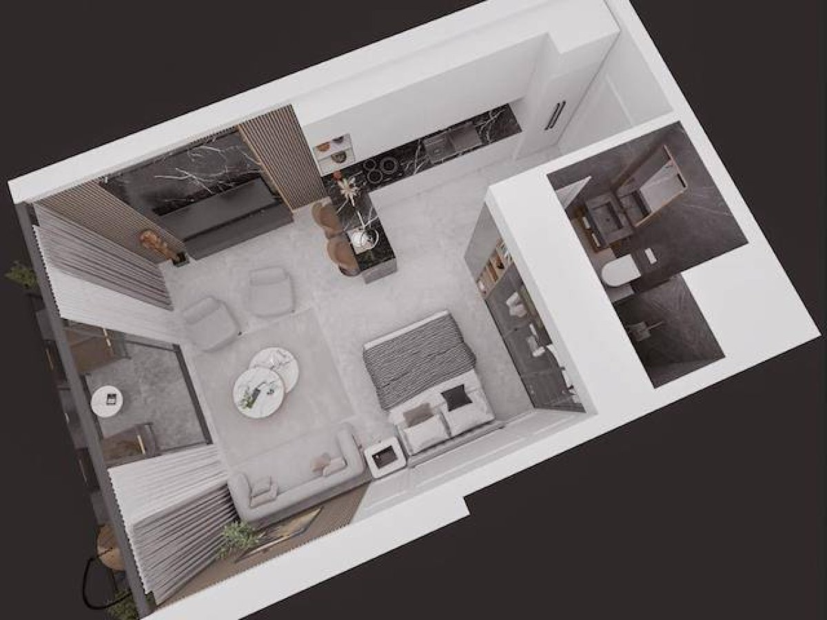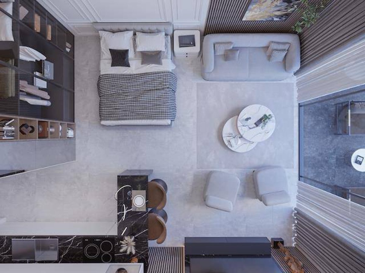 ???? Modern mimari anlayışıyla tasarlanmış, ferah bir studio alanı.