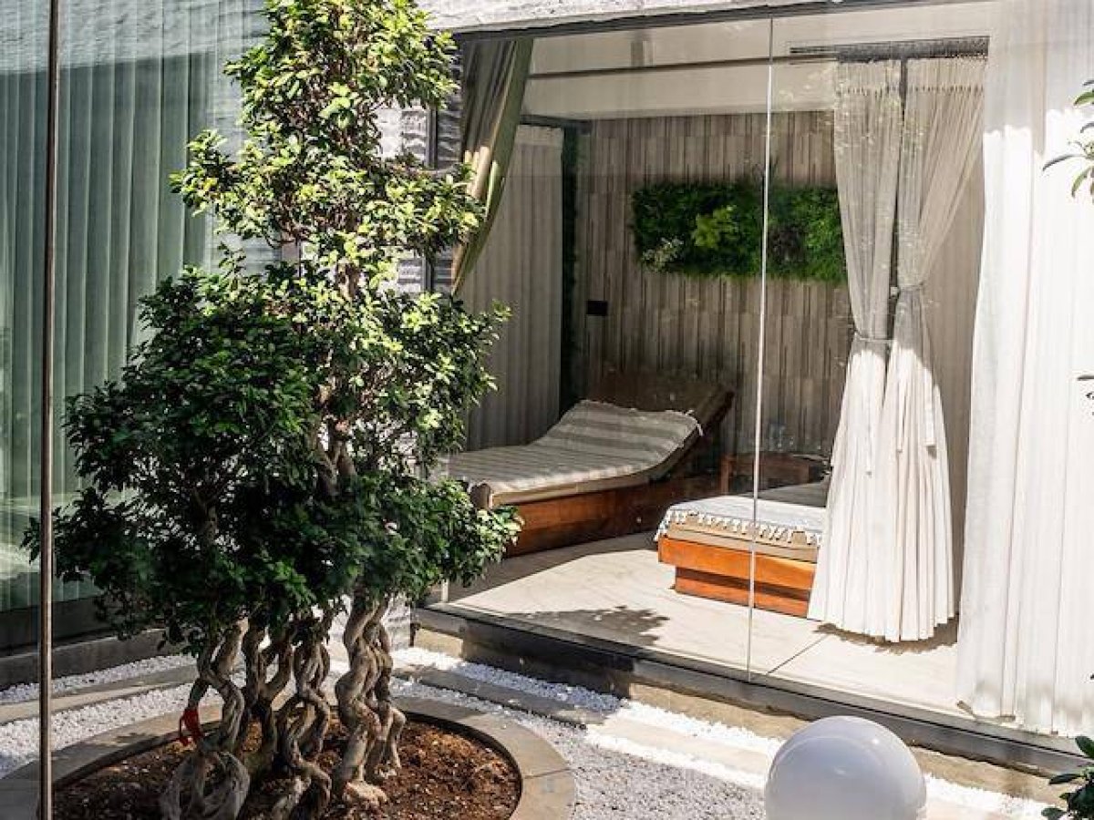 Daire zemin katta yer almaktadır, büyük terasa sahiptir ve iç merdiven ve asansörle erişilen 300 m²'den büyük çatı ortak terasa sahiptir, Beshparmak Dağları'na, ormanlara, denize muhteşem manzara.